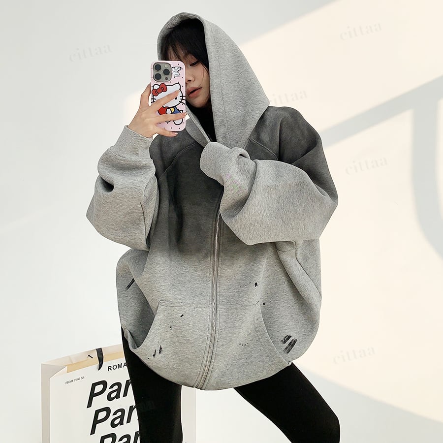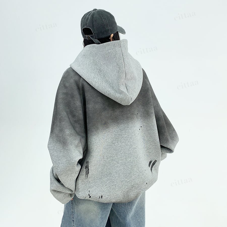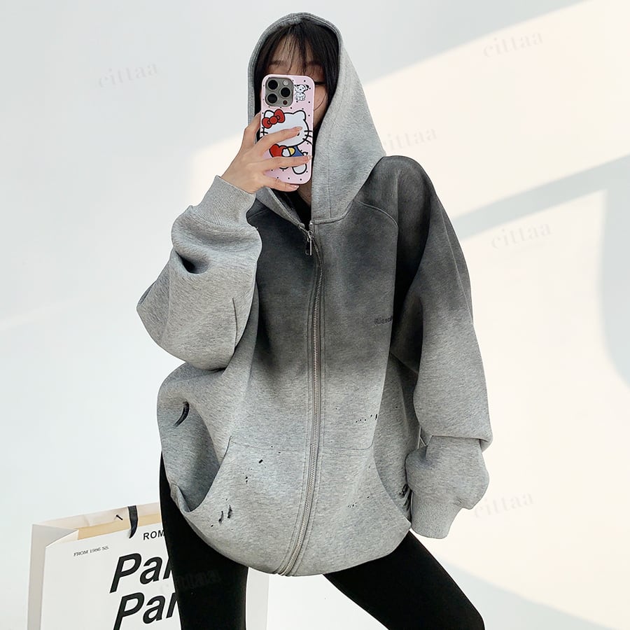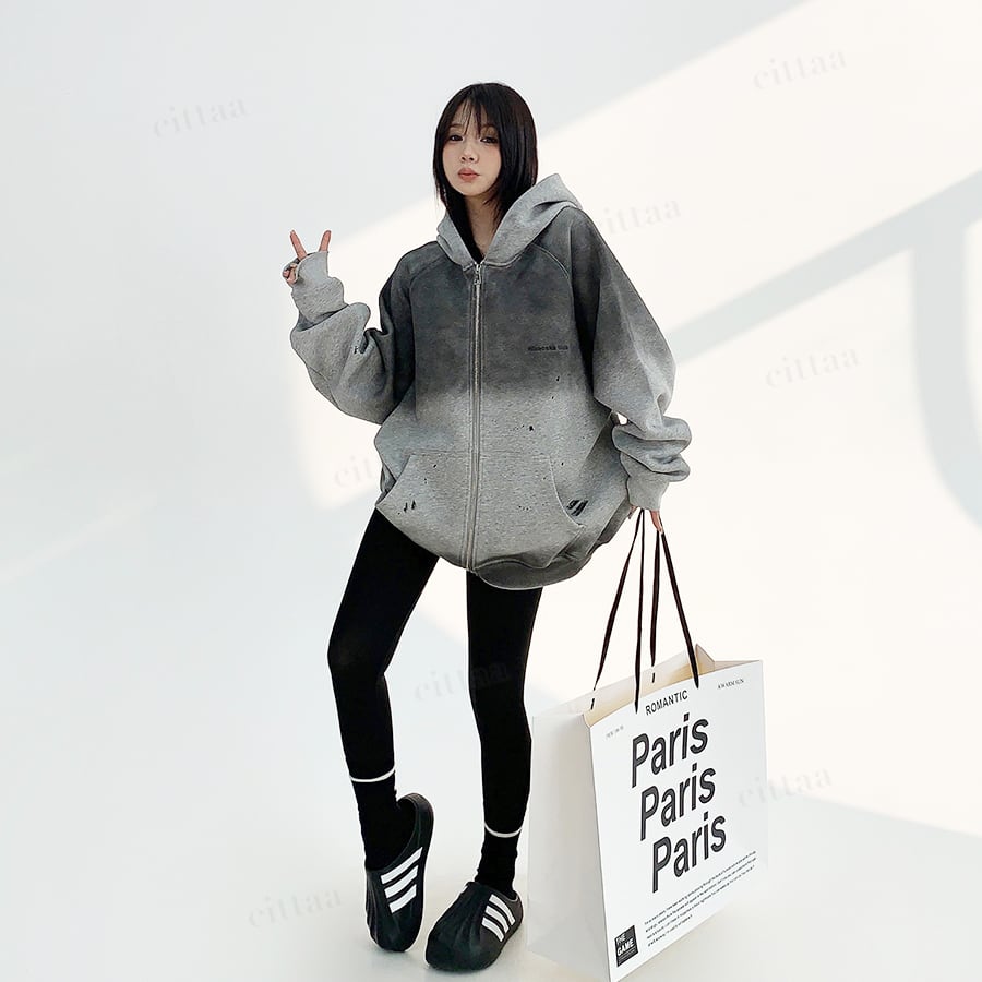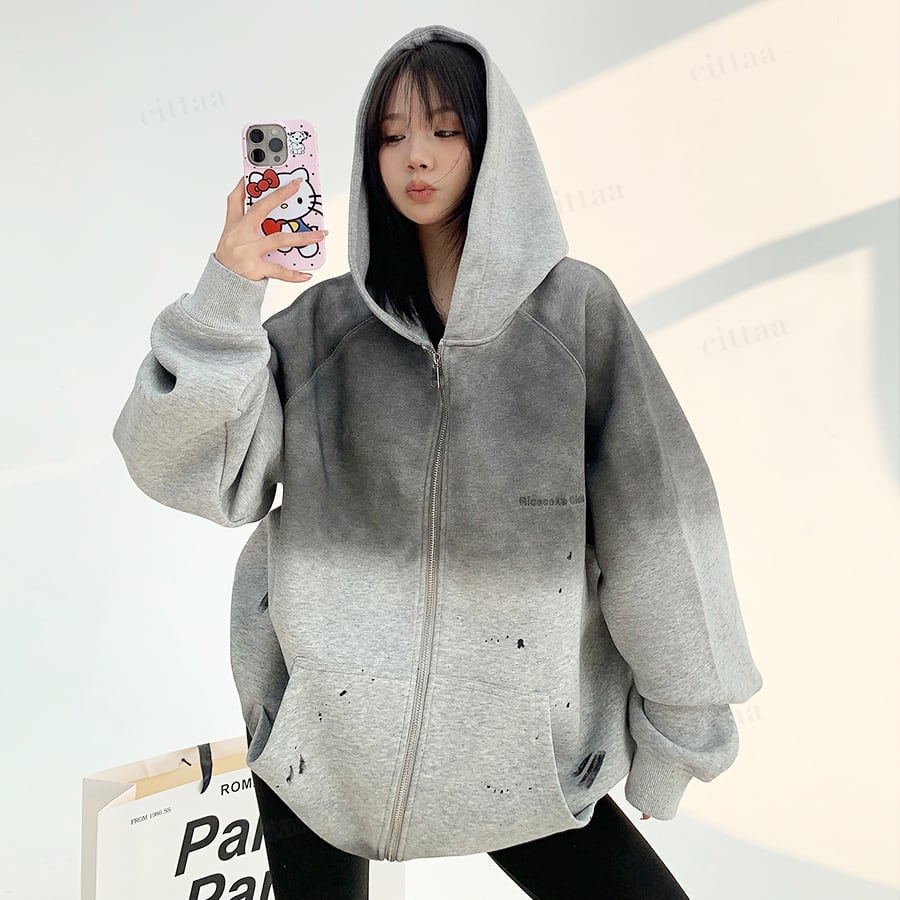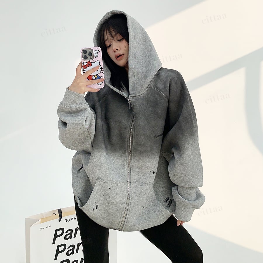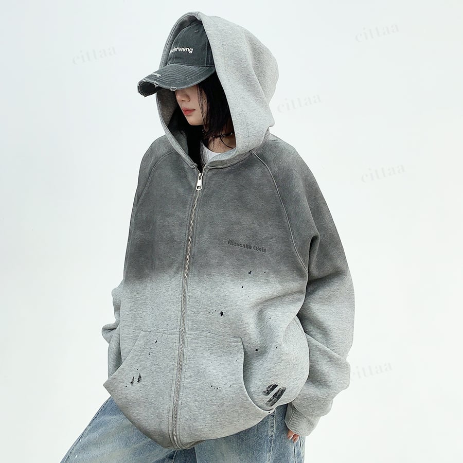 ★予約★D-540 2025秋新作♡ヴィンテージグラデーションジップアップパーカー チャコール