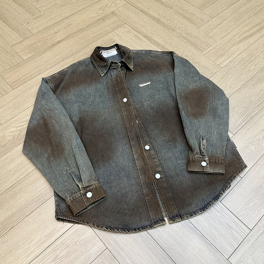 ★予約★D-541 2025秋新作♡ヴィンテージウォッシュデニムシャツ ヴィンテージブルーイエロー