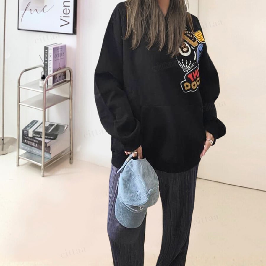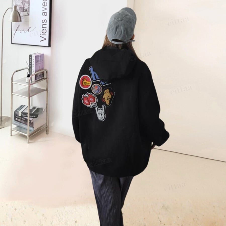C-484 2025秋新作♡RRサガラ刺繍ワッペンフーディー ブラック 0923