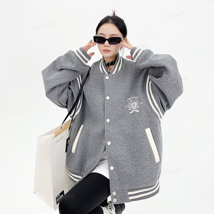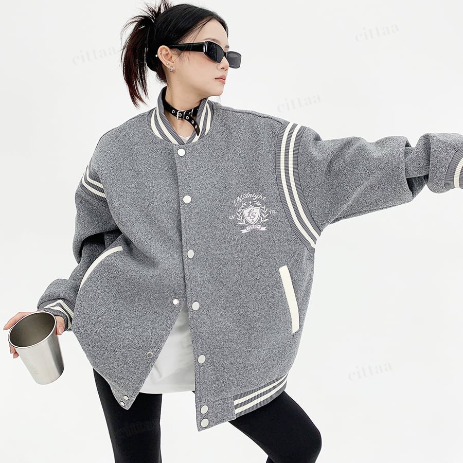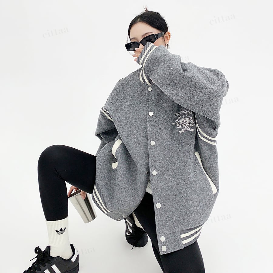 ★予約★D-544 2025秋新作♡Midnight刺繍ラインデザインブルゾン グレー