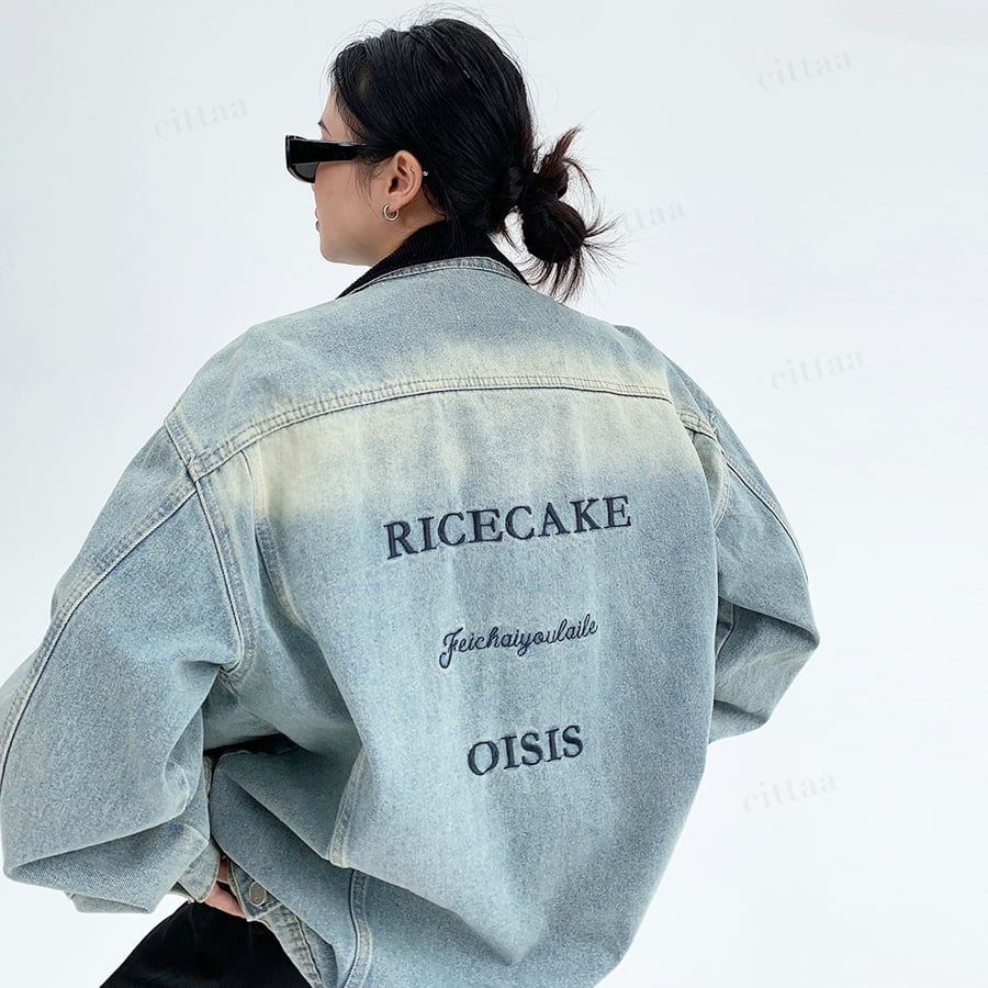 ★予約★D-551 2025秋新作♡RICECAKEバックロゴコーデュロイ襟デニムブルゾン ライトブルー