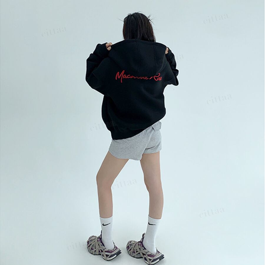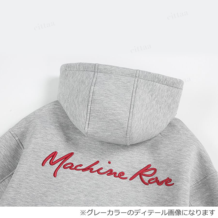 【即納】【早割限定特典10%OFF】D-556 2025秋新作♡Machineレッド刺繍ロゴジップアップパーカー ブラック
