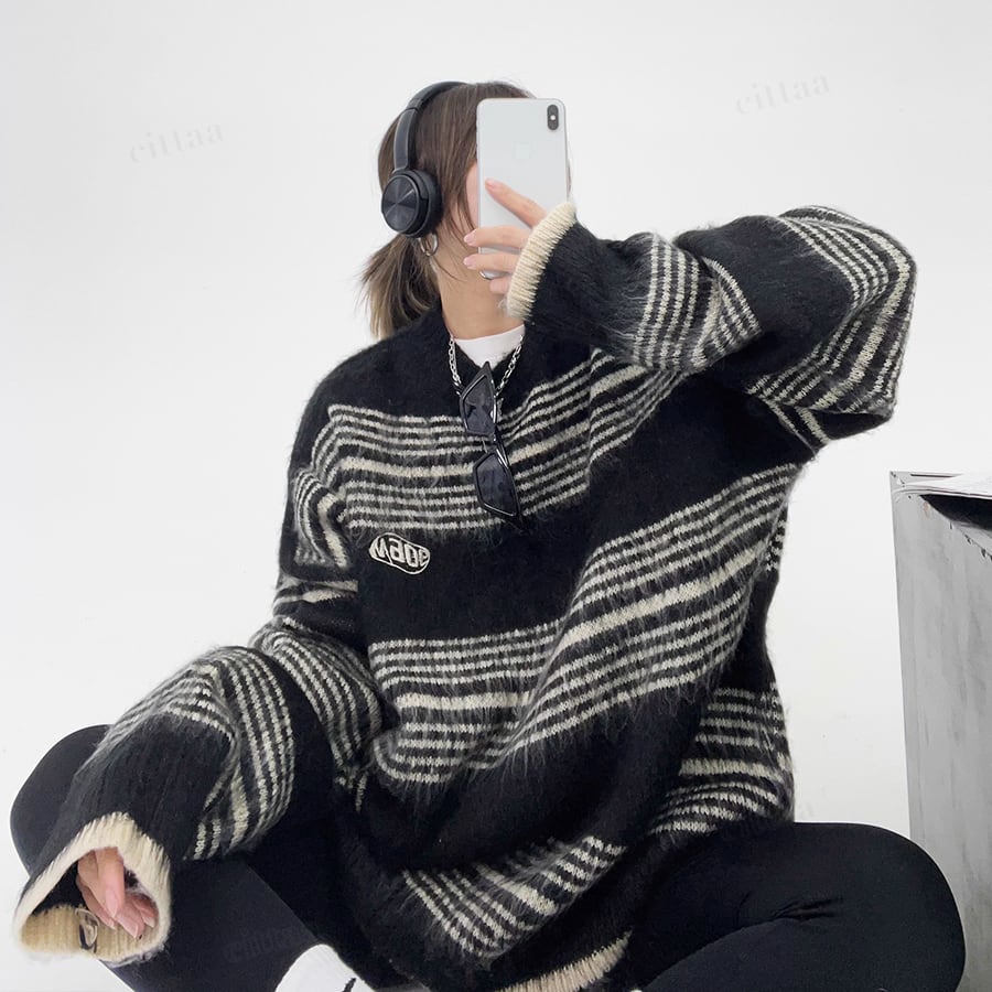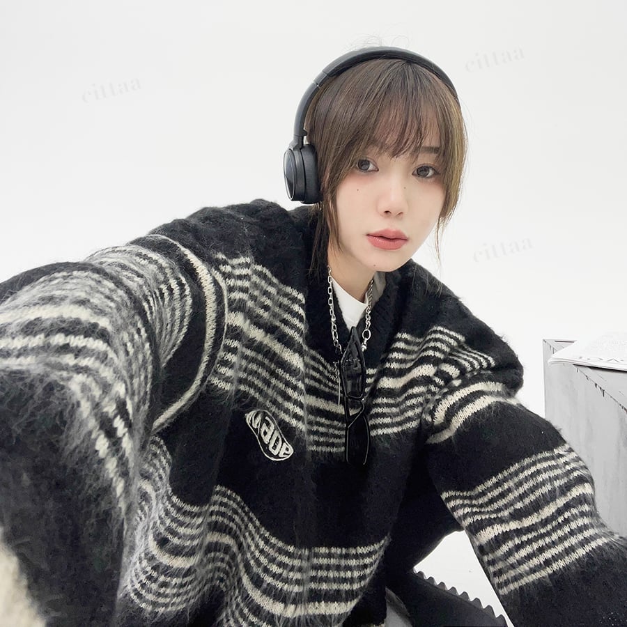 ★予約★D-578 2025秋新作♡Maoeマルチボーダー柄モヘアニット ブラック