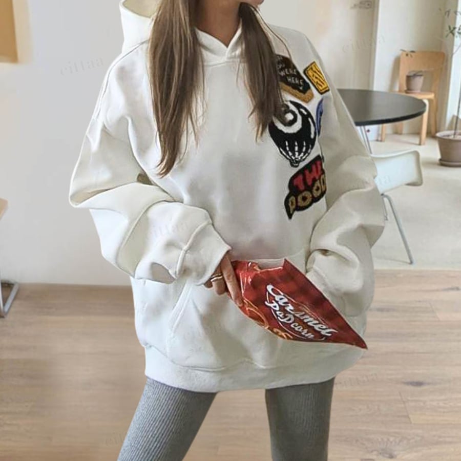 C-484 2025秋新作♡RRサガラ刺繍ワッペンフーディー ホワイト 0923