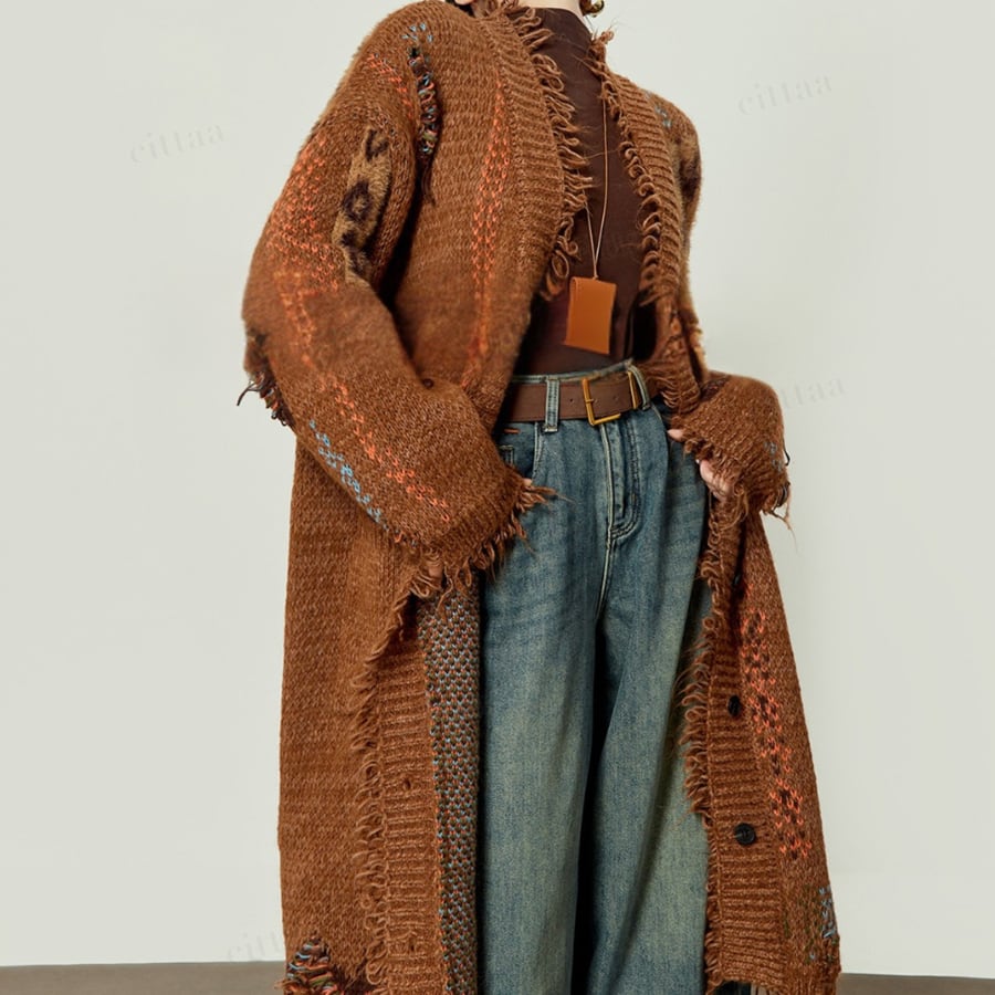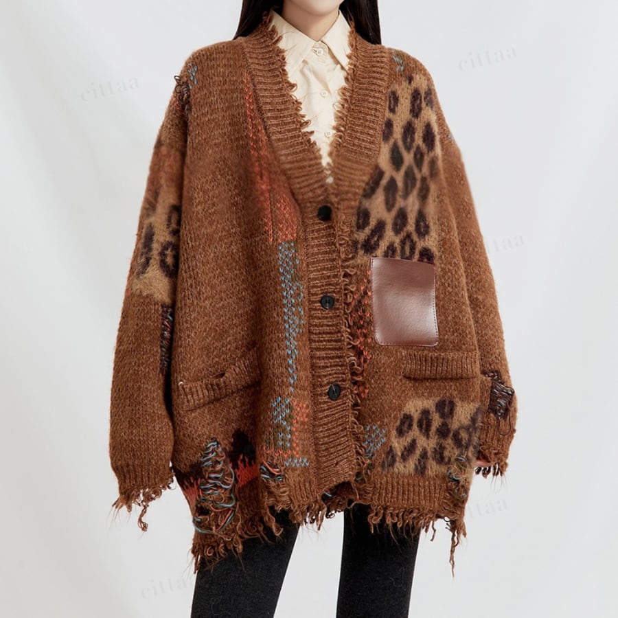 ★予約★D-584 2025秋新作♡パッチワークデザインニットカーディガン ブラウン