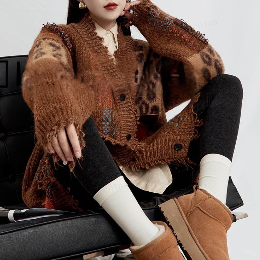 さっと羽織るだけでコーデが華やぐ主役級アイテム。レオパード柄をMIXした存在感たっぷりのデザインに、程よくエッジを効かせたダメージ加工がアクセント◎ トレンド感もしっかり押さえた1枚です。