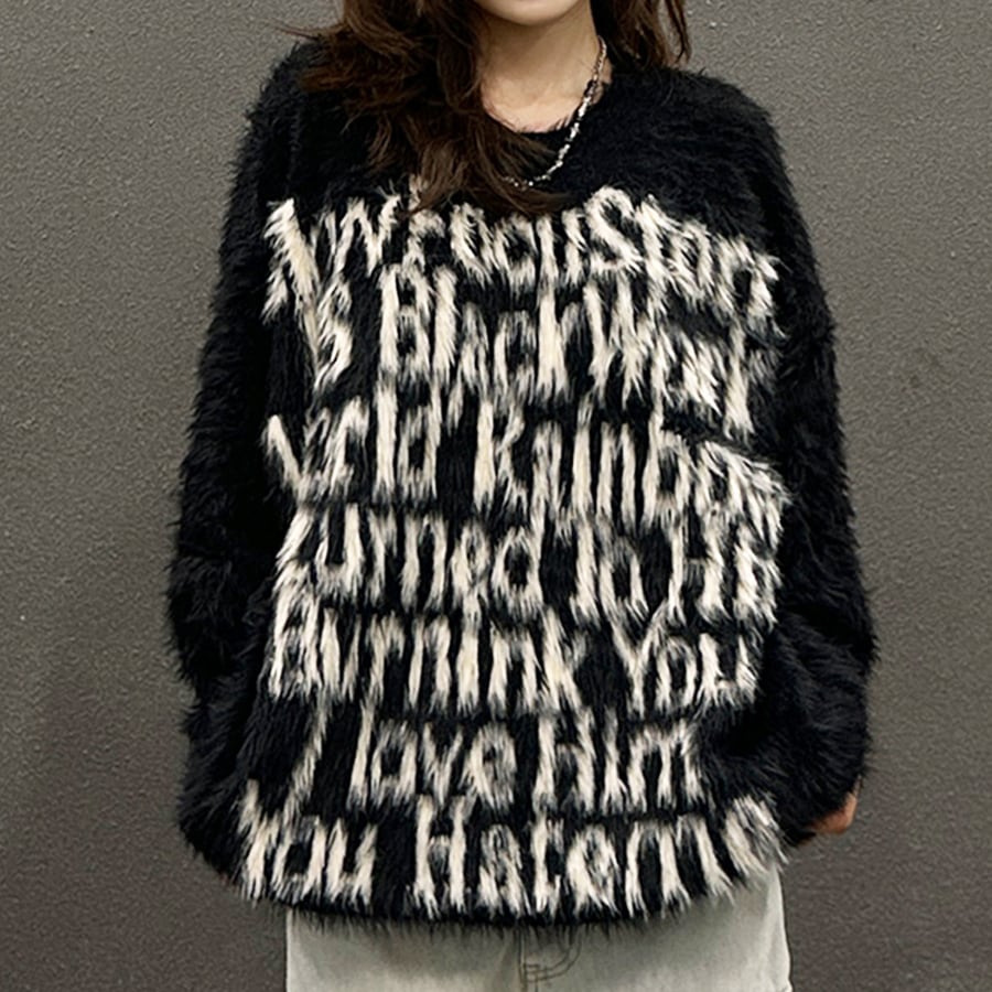 【即納】【早割限定特典10%OFF】D-599 2025秋新作♡blackwork英字ロゴシャギーニット ブラック 1010