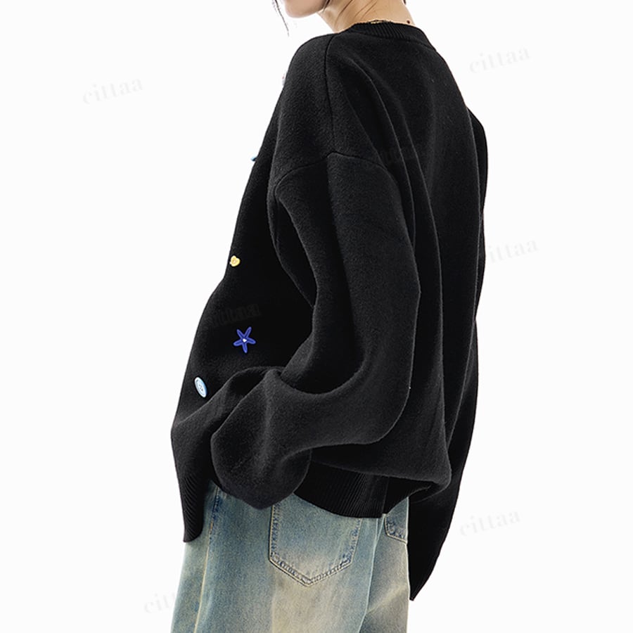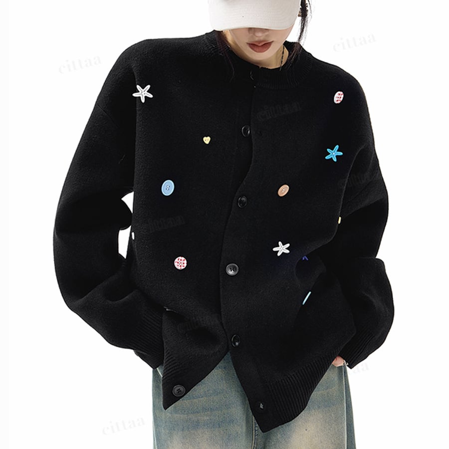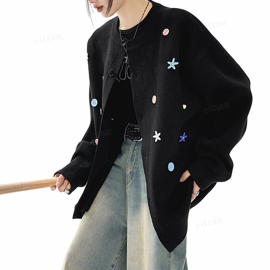 【即納】【早割限定特典10%OFF】D-604 2025秋新作♡ランダムボタンデザインニットカーディガン ブラック 1010