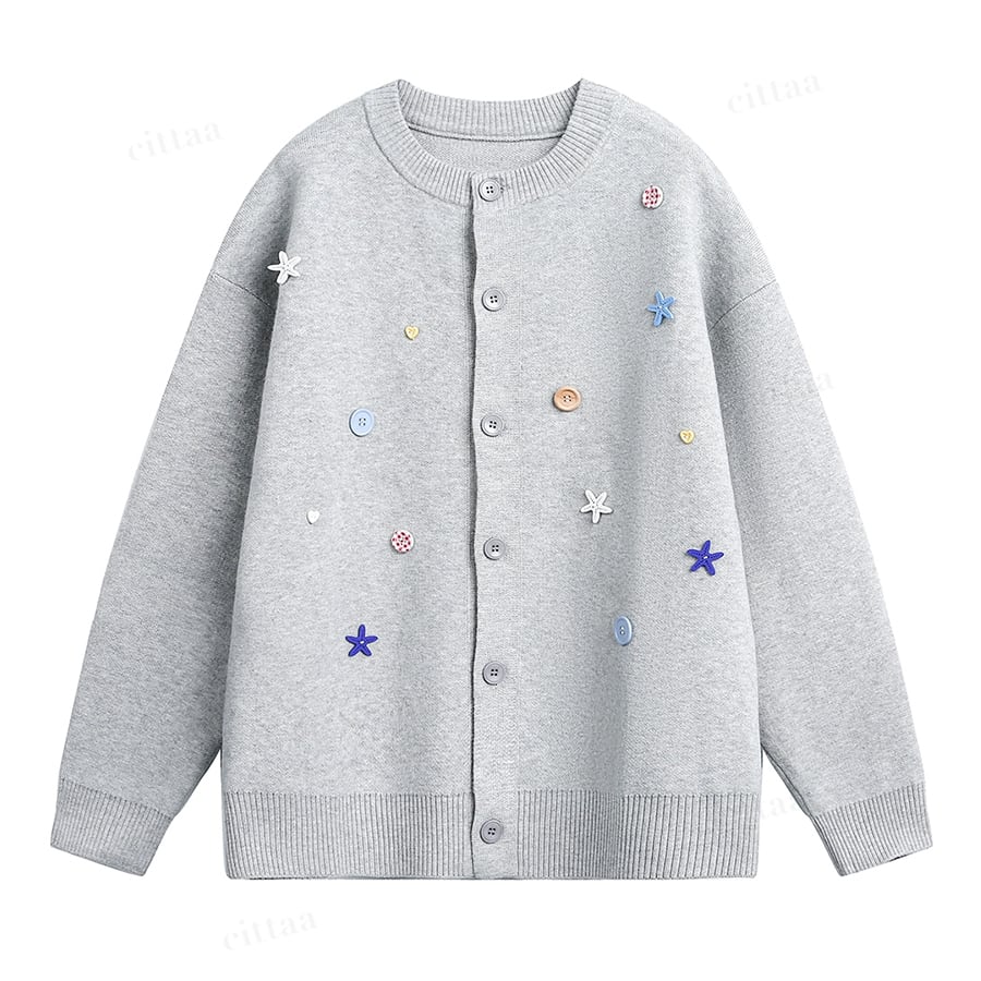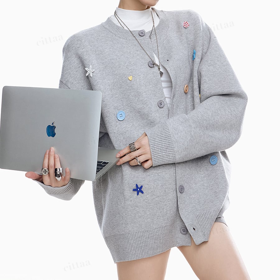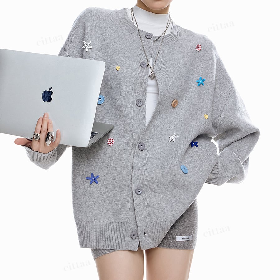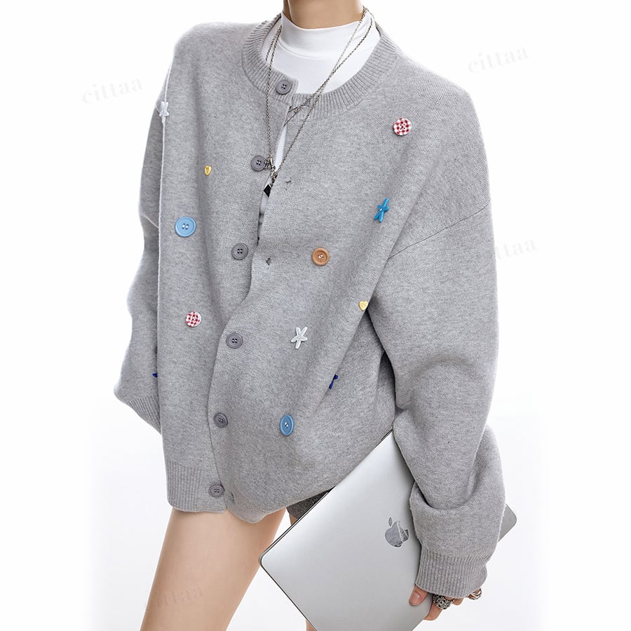 【即納】【早割限定特典10%OFF】D-604 2025秋新作♡ランダムボタンデザインニットカーディガン グレー 1010