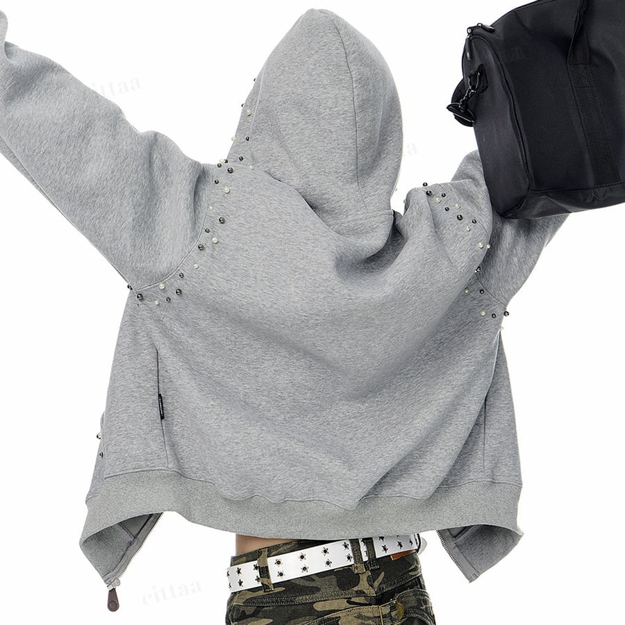 パールスタッズデザインがアクセントに効いたジップアップパーカー♡