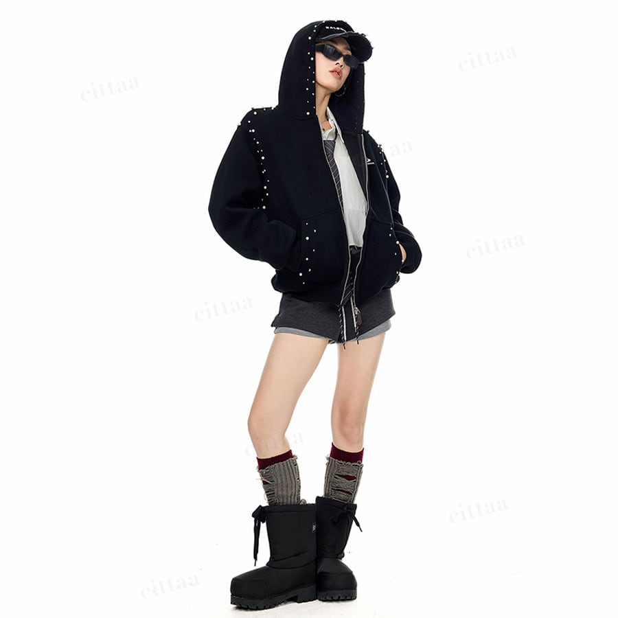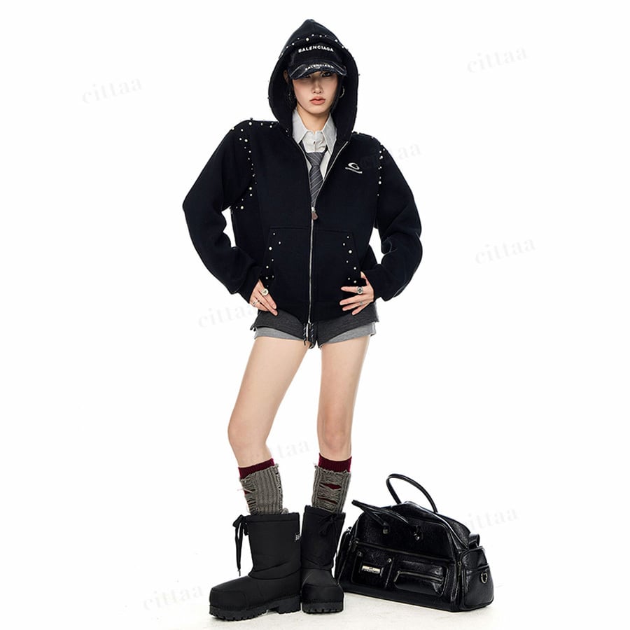 パールスタッズデザインがアクセントに効いたジップアップパーカー♡
