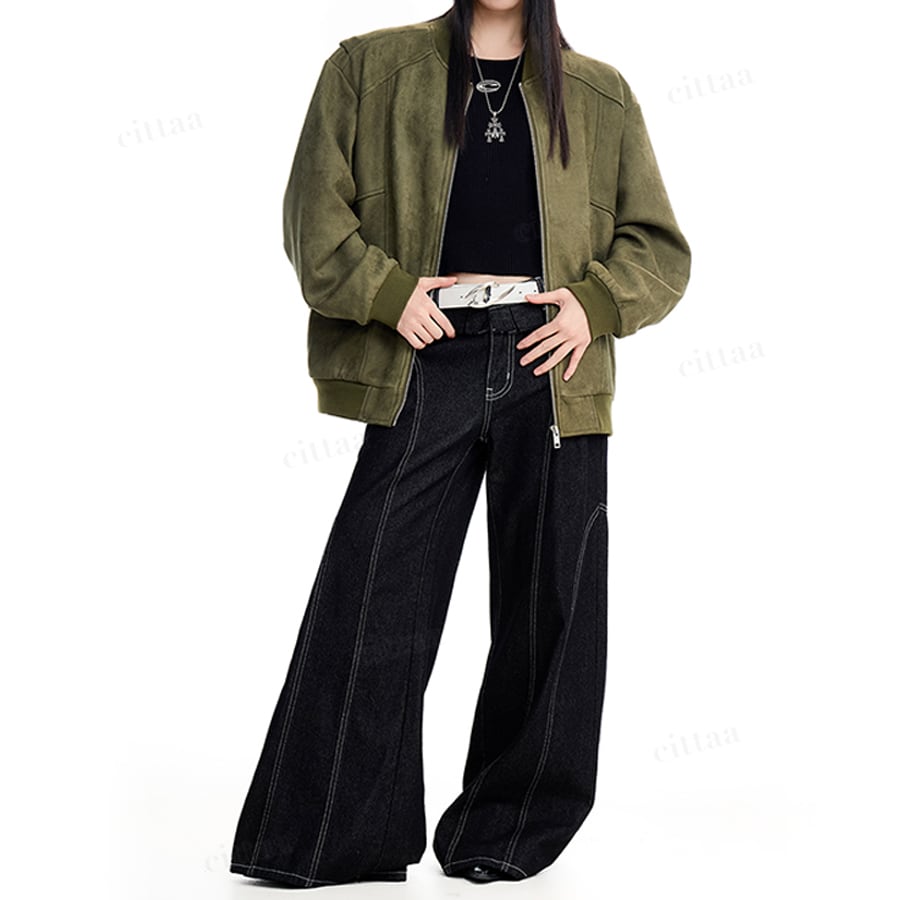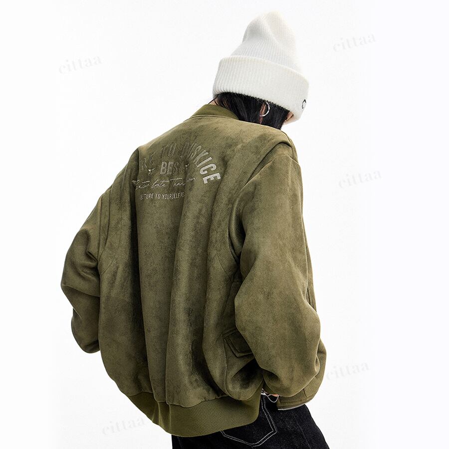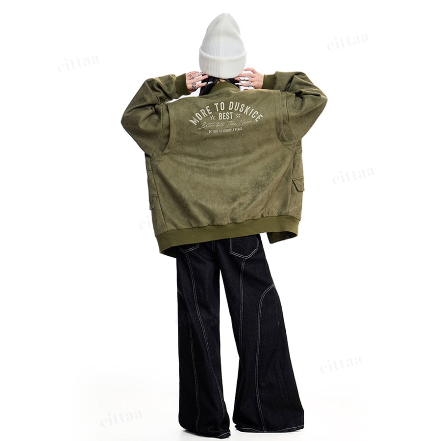 【即納】【早割限定特典10%OFF】D-611 2025秋新作♡DUSKICEバックロゴスウェードブルゾン グリーン 1010