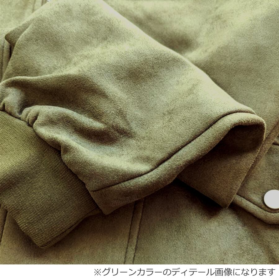 シーズンライクなスウェード風素材を使用。背面には刺繍ロゴが施されており、さっと羽織るだけで後ろ姿までしっかりキマる一着です。