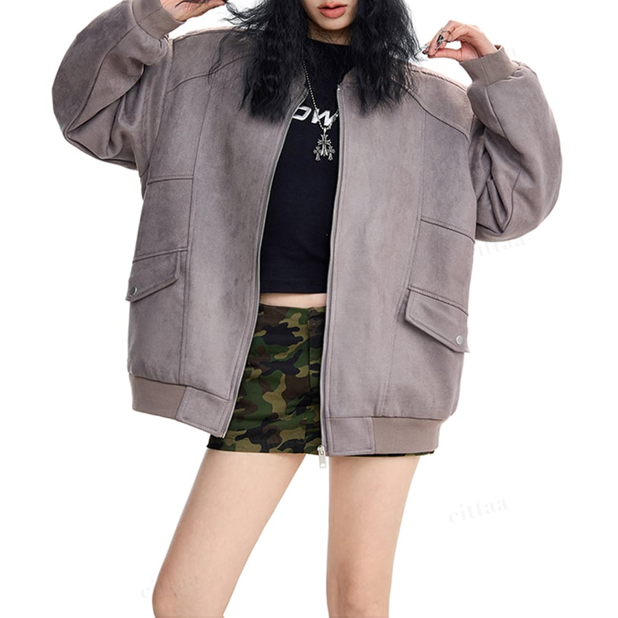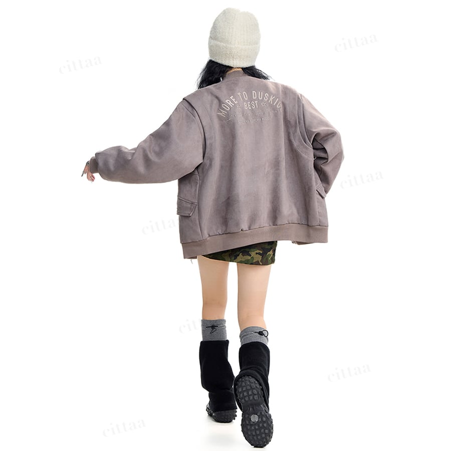 後ろ姿までオシャレに決まるバックロゴスウェード風ブルゾン♡