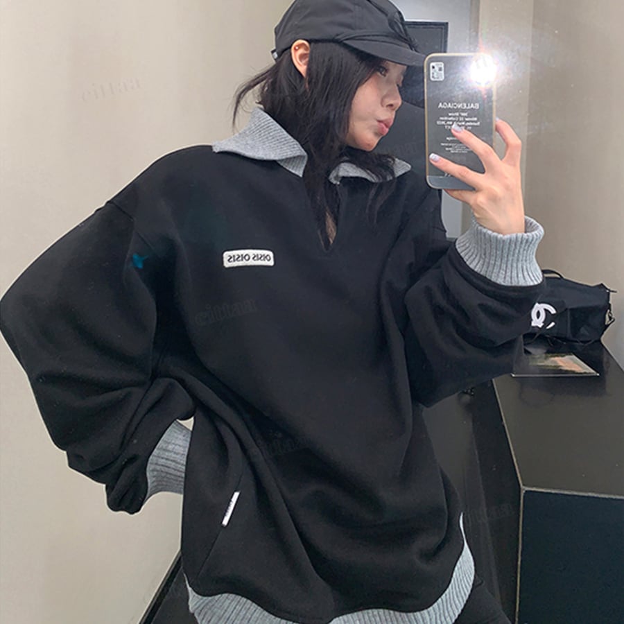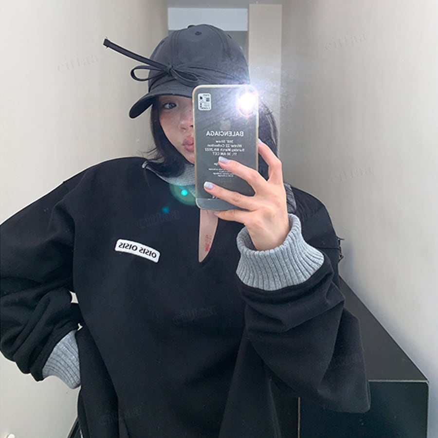 ★予約★D-627 2025秋新作♡OISIS配色デザインスキッパースウェット ブラック