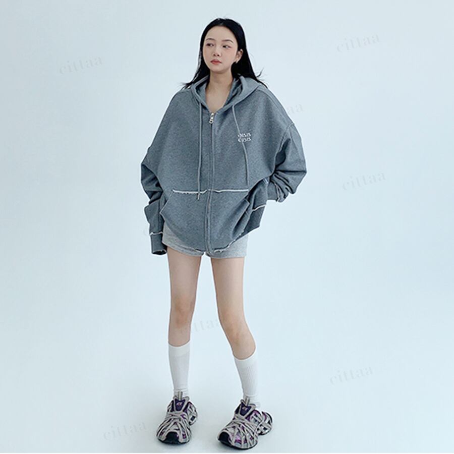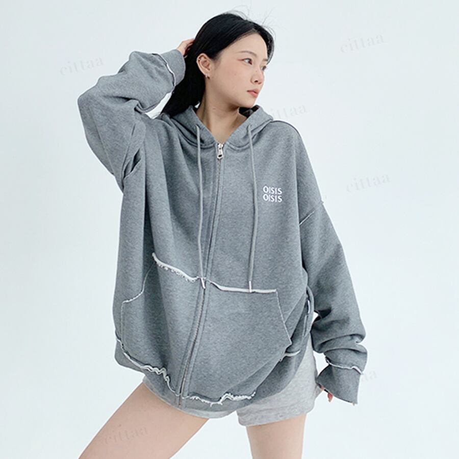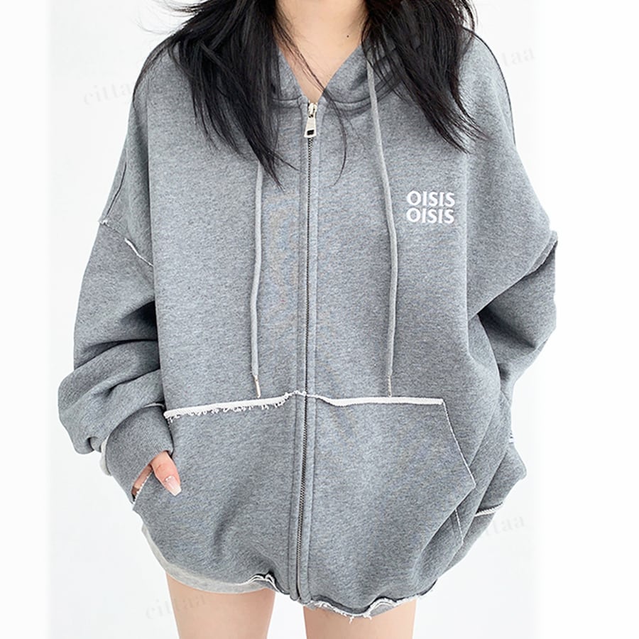 ★予約★D-628 2025秋新作♡OISISダメージデザインジップアップパーカー グレー