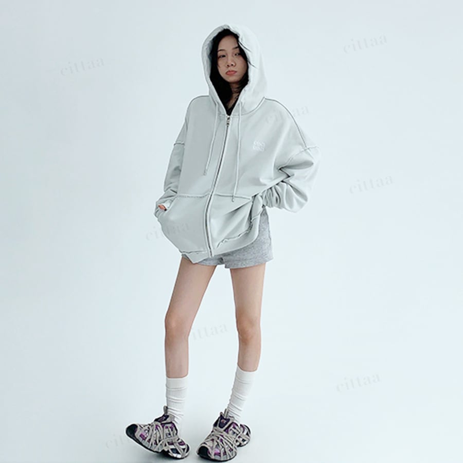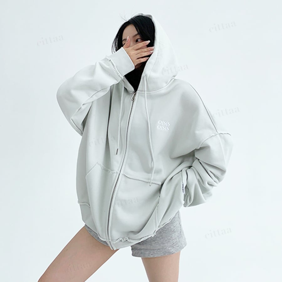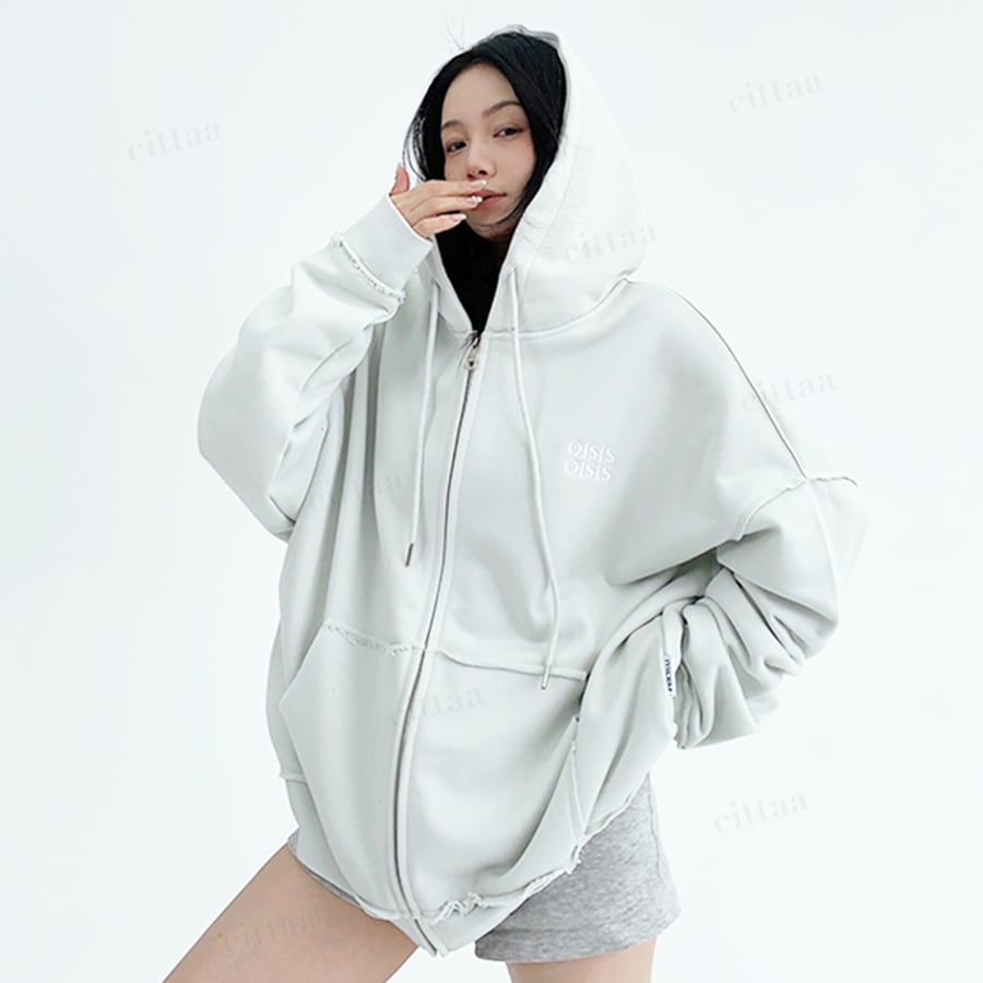 ★予約★D-628 2025秋新作♡OISISダメージデザインジップアップパーカー オフホワイト