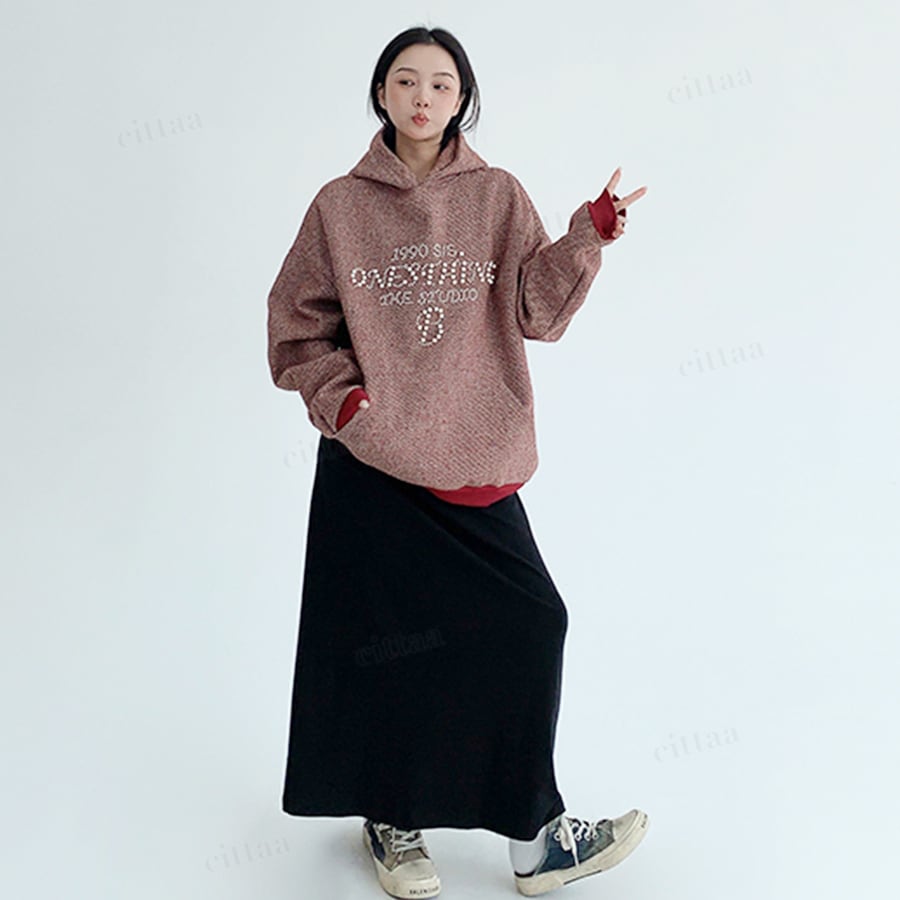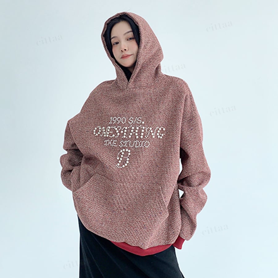 ビジューロゴで差がつく大人っぽフーディー♡