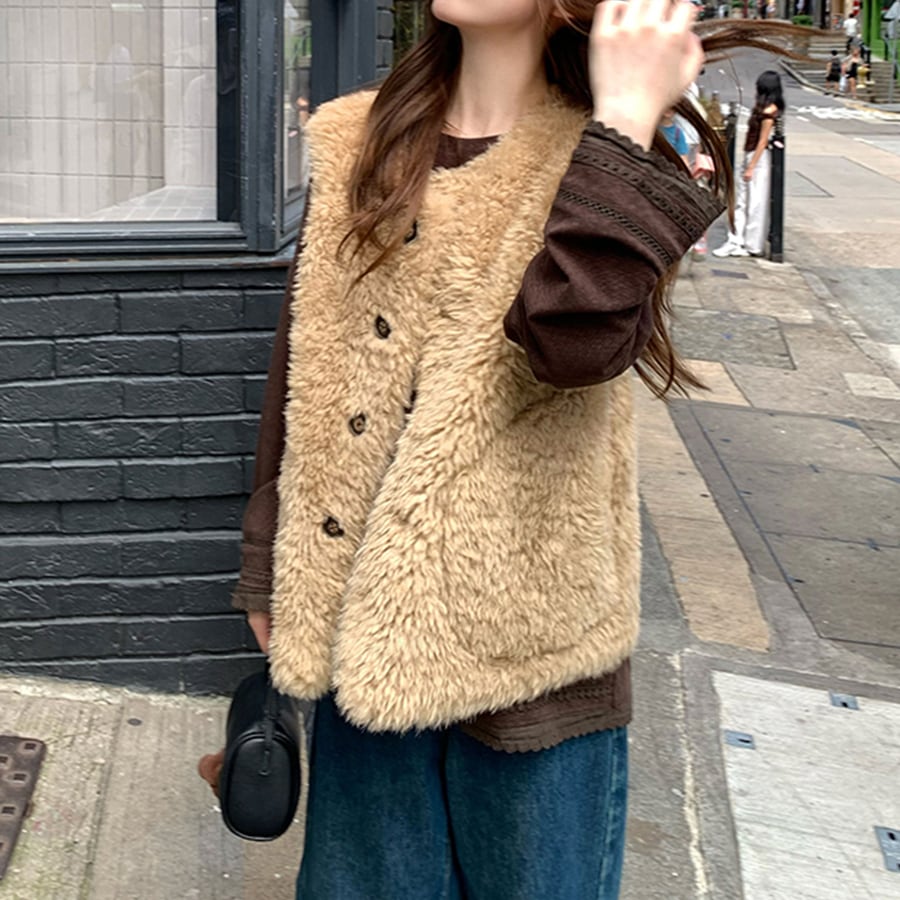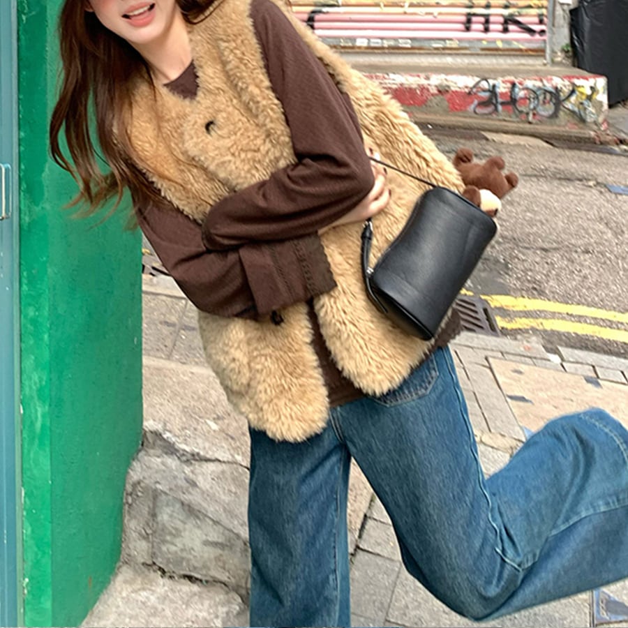 さらっと羽織るだけで、旬なスタイリングが完成するファーベスト♡