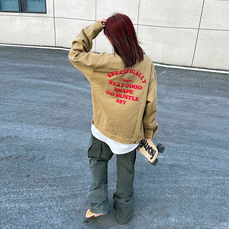後ろ姿までお洒落に決まり刺繍ロゴワークジャケット♡