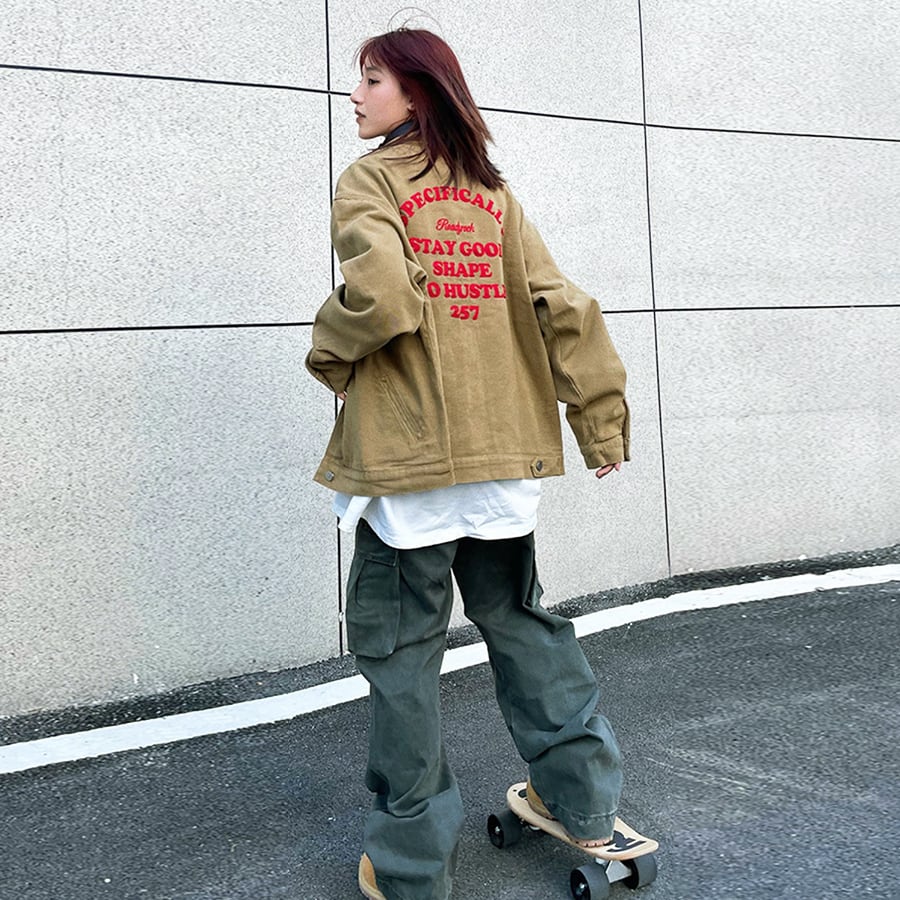 今っぽいメンズライクな雰囲気で、ストリートテイストの着こなしにもぴったり。中に着込めるゆったり感でロングシーズン活躍します。