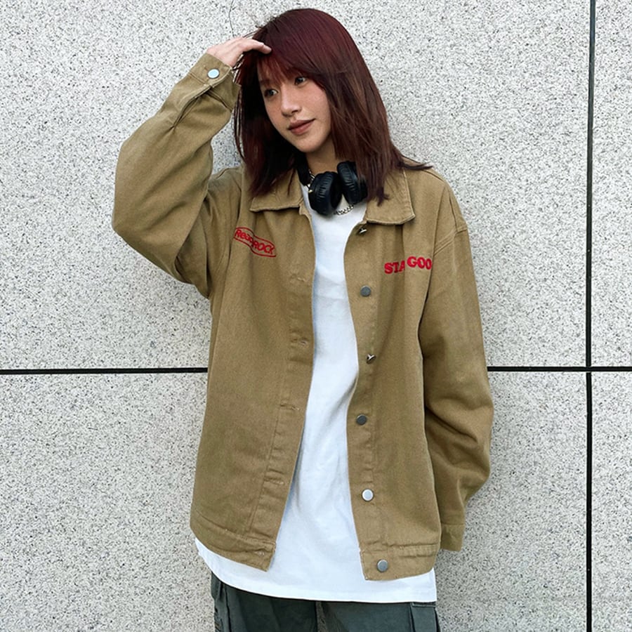 ★予約★D-635 2025秋新作♡STAY GOODバック刺繍ワークジャケット ブラウン