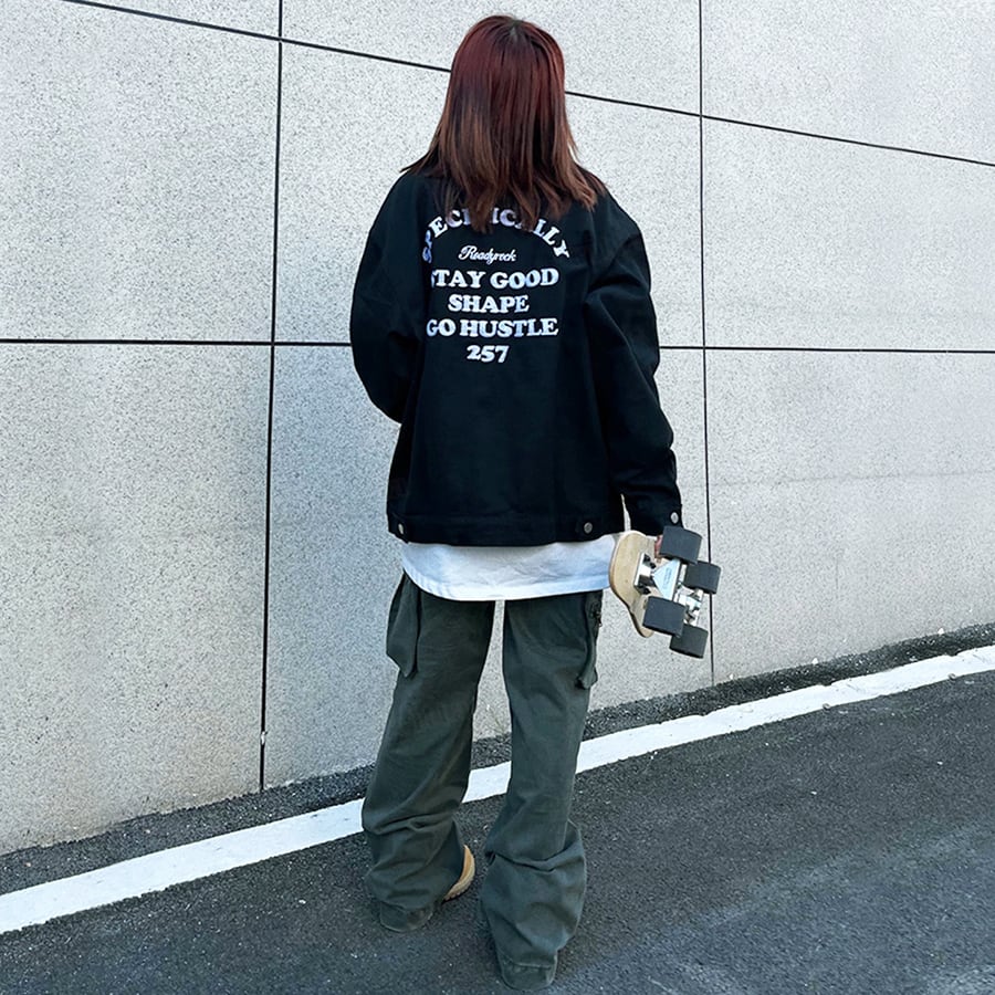 ★予約★D-635 2025秋新作♡STAY GOODバック刺繍ワークジャケット ブラック