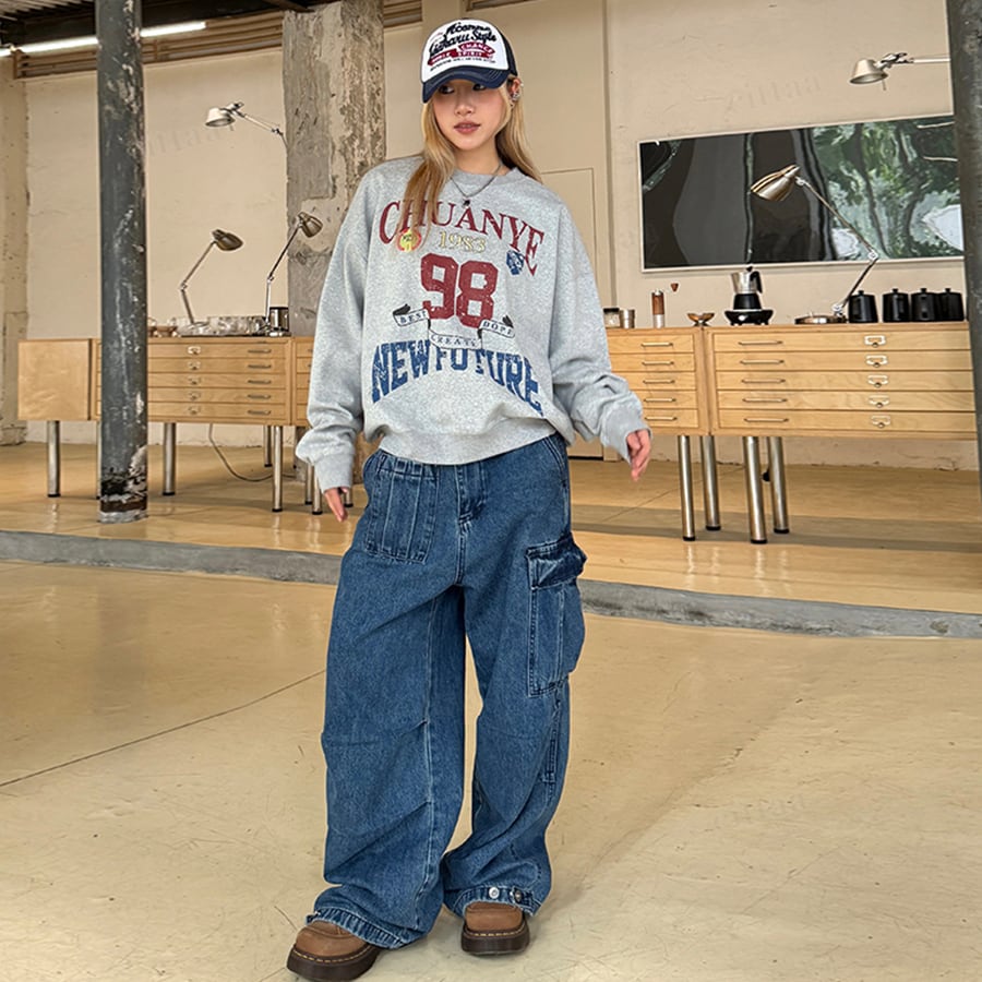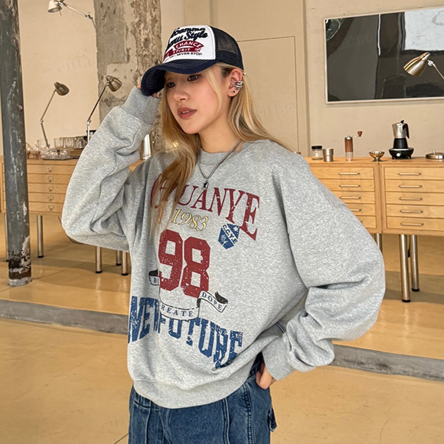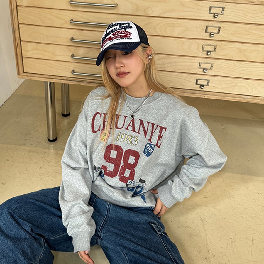 ★予約★D-636 2025秋新作♡CHUANYEヴィンテージプリントスウェット グレー