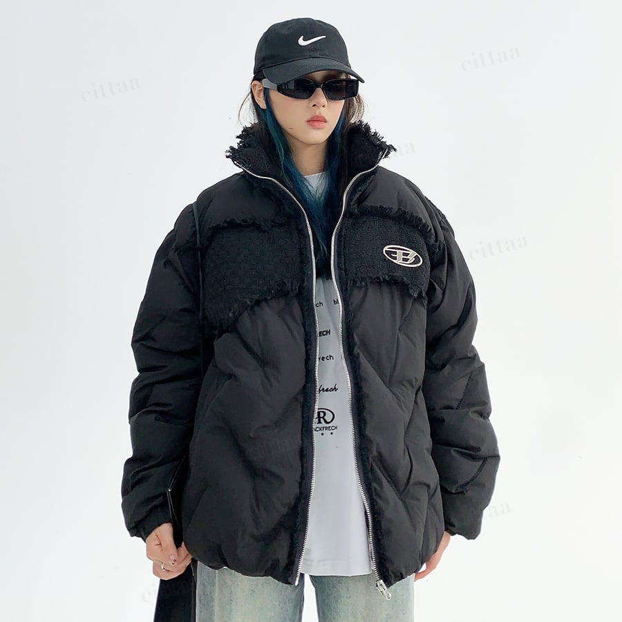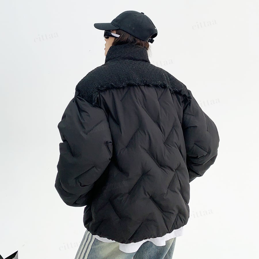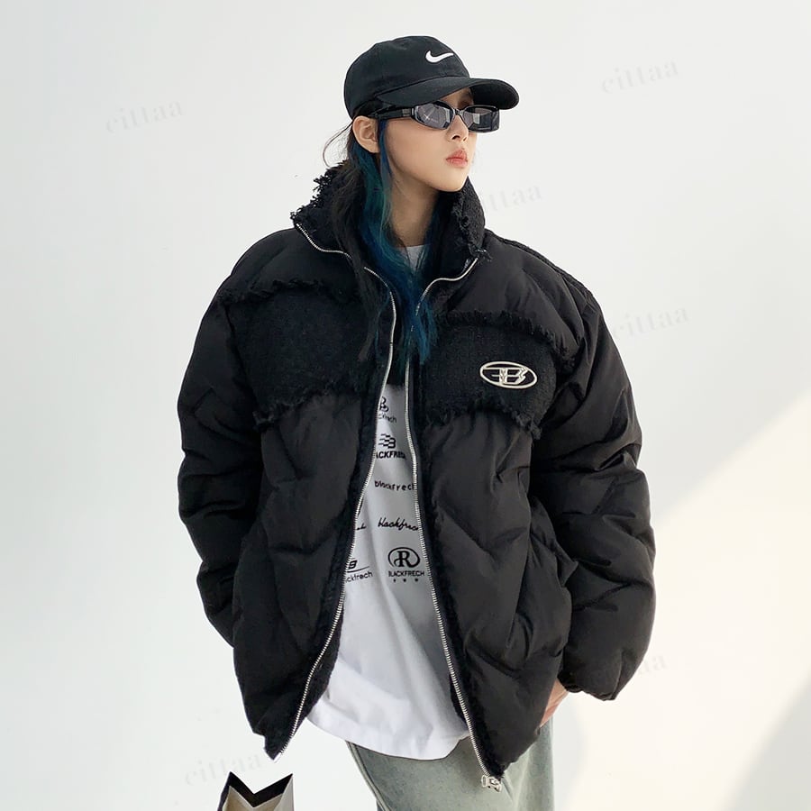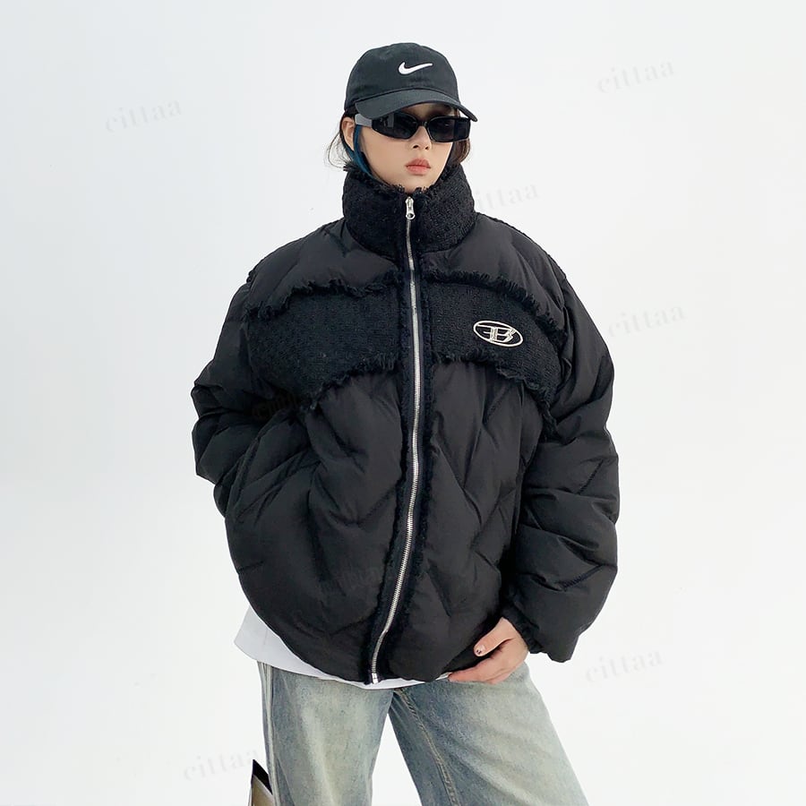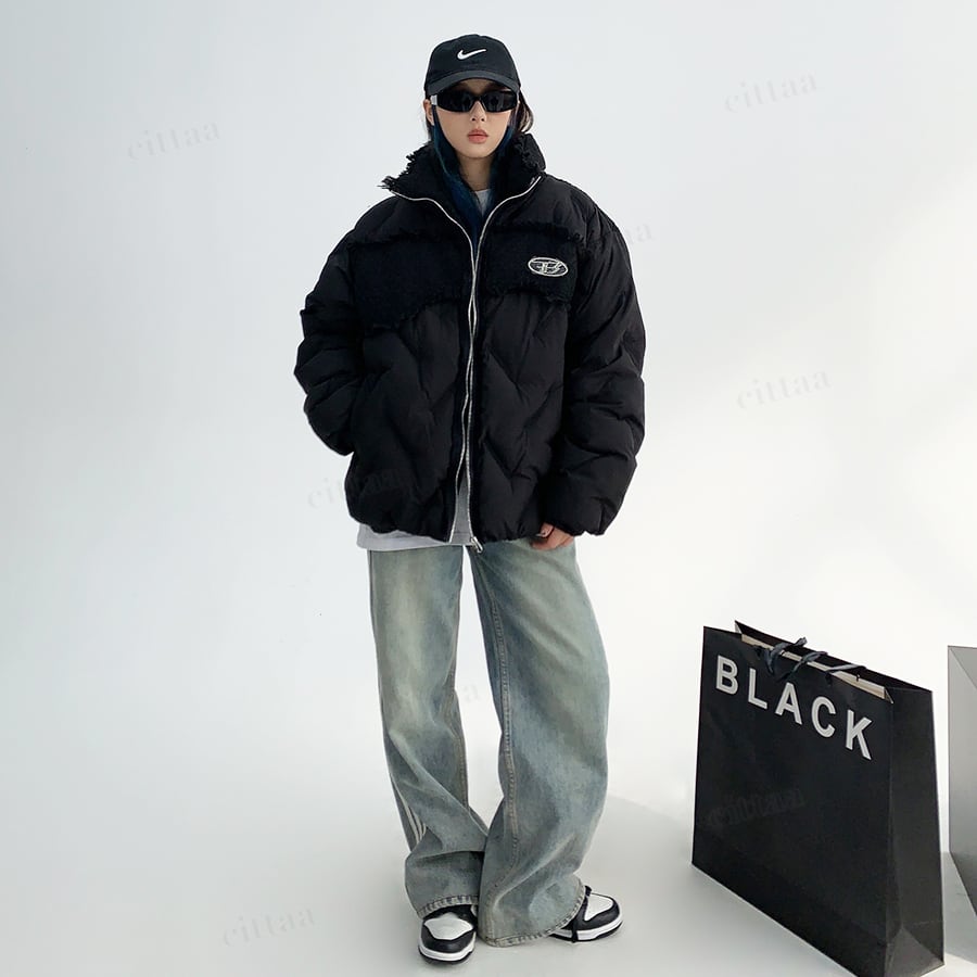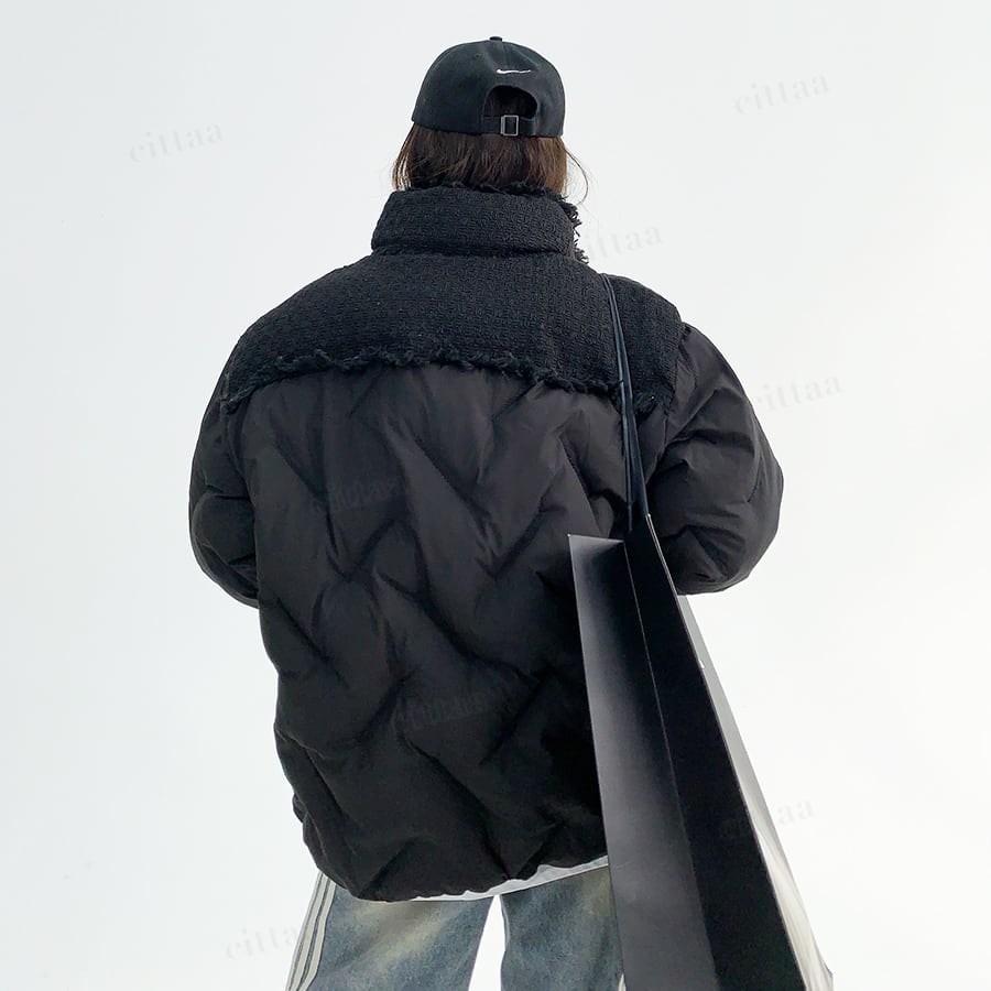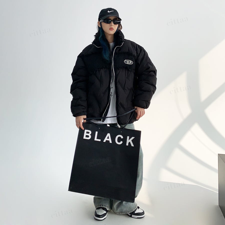 ★予約★D-651 2025秋新作♡異素材MIX中綿入りブルゾン ブラック