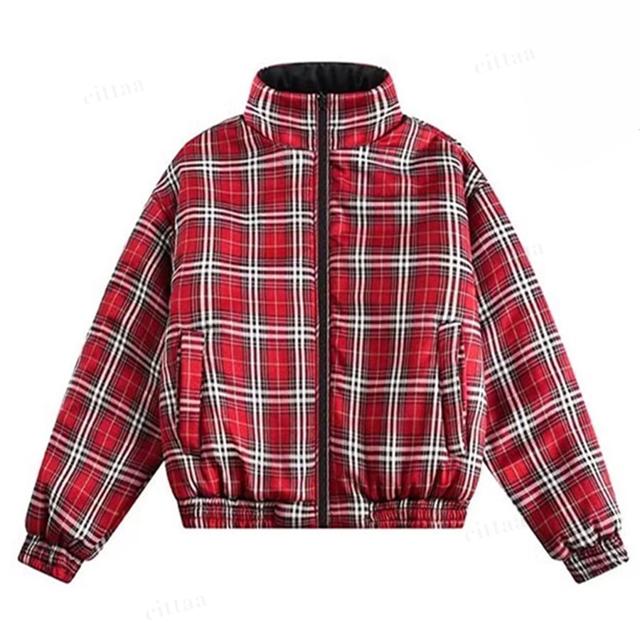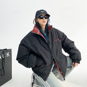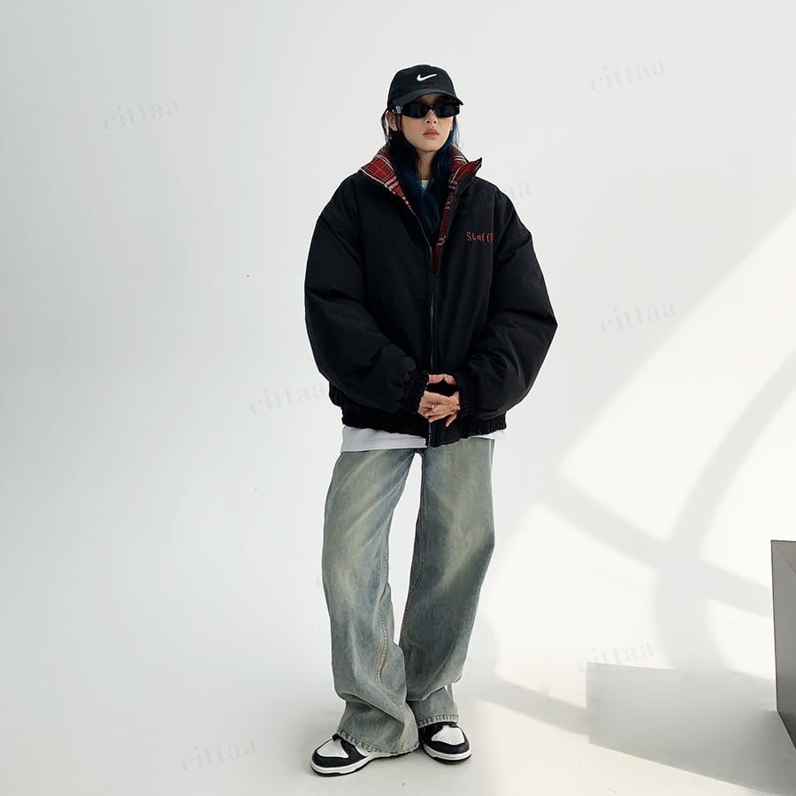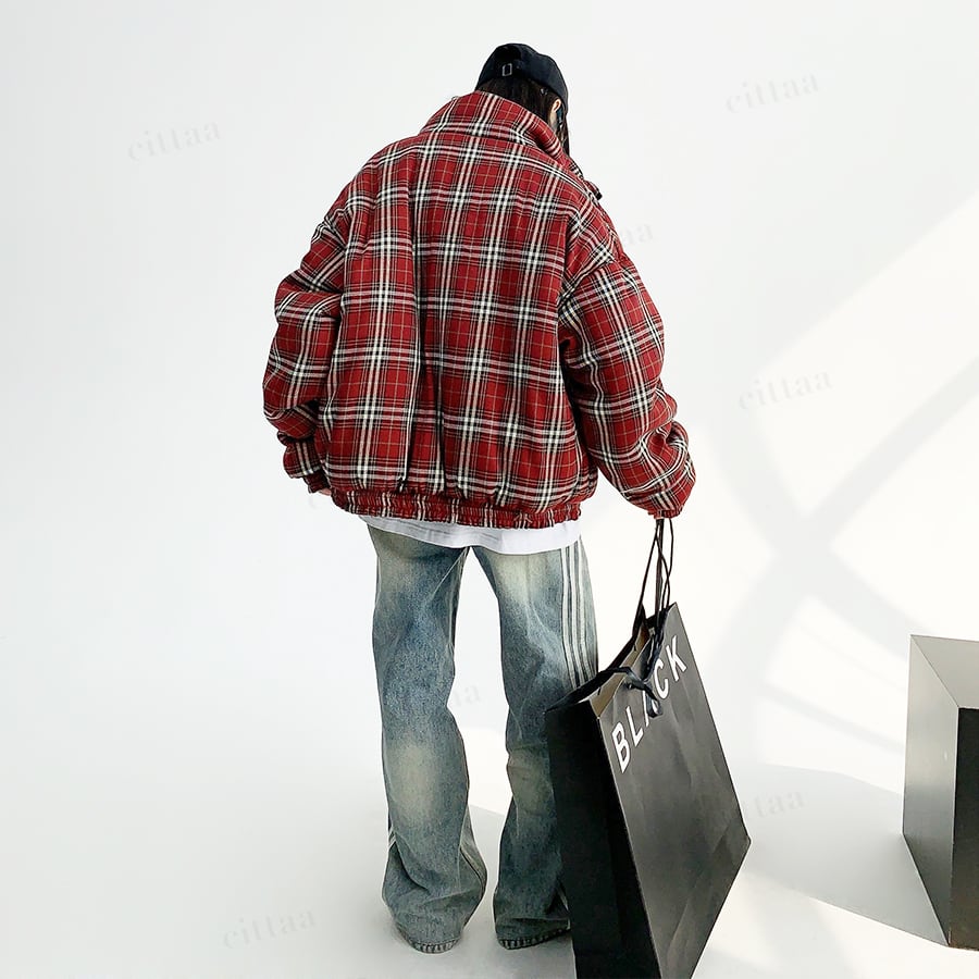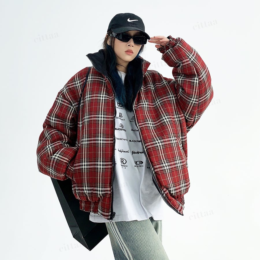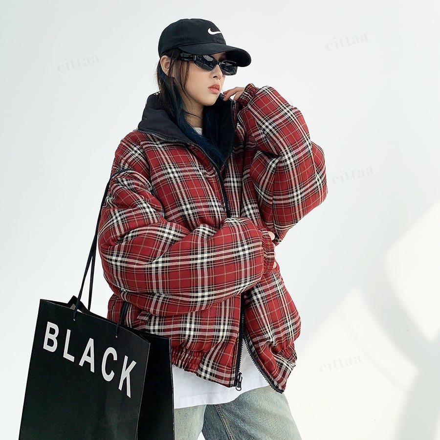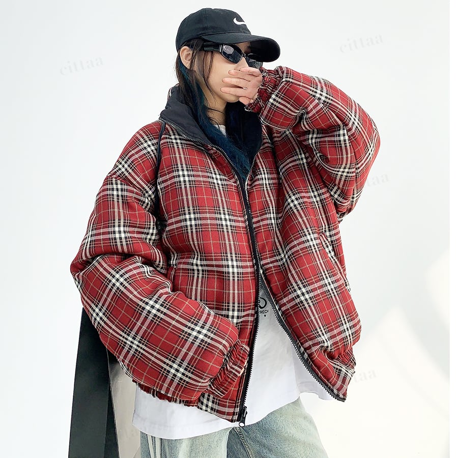 リバーシブルで着回し自在チェック柄中綿入りブルゾン♡