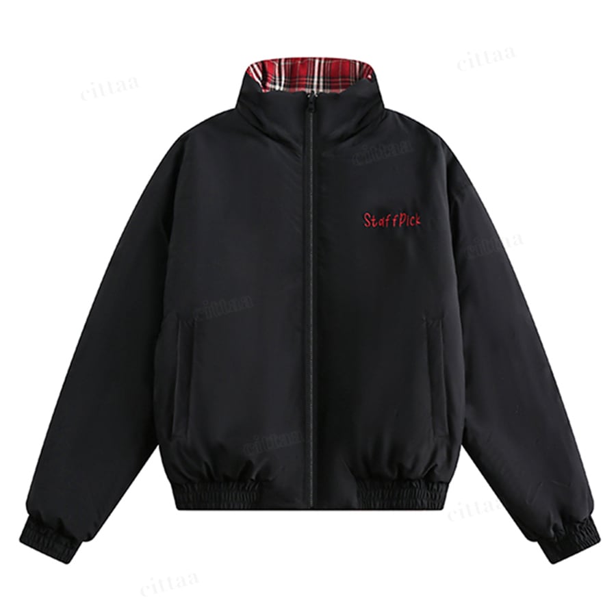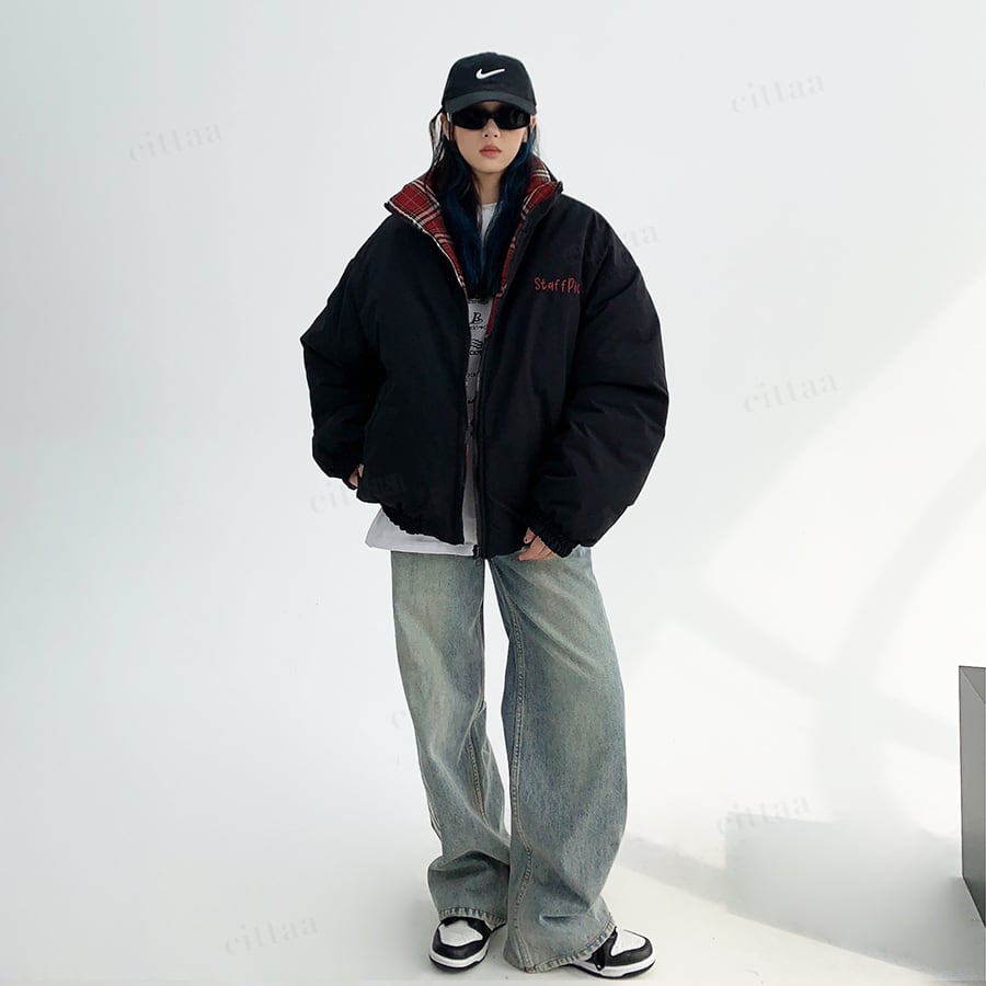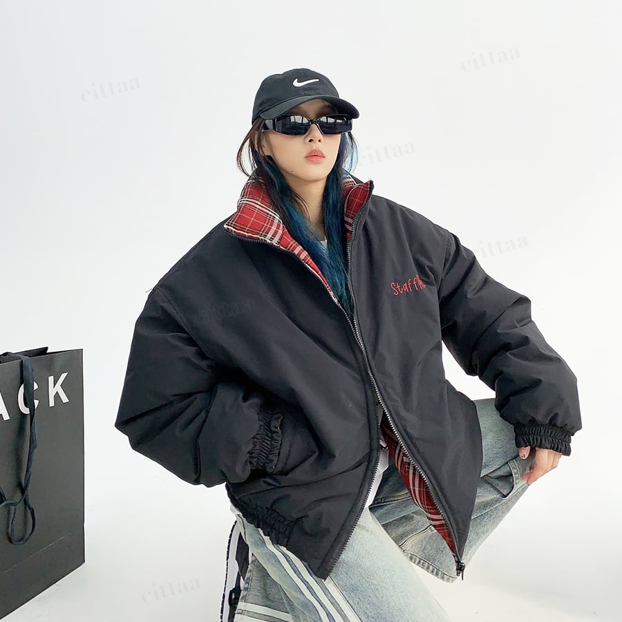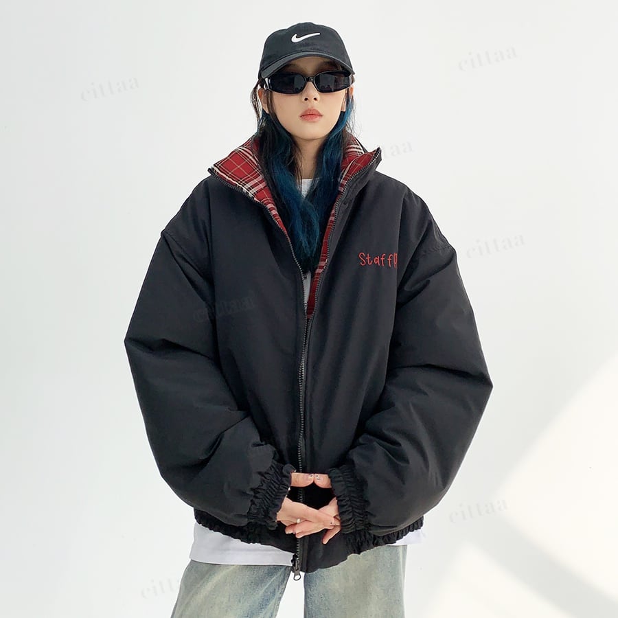 ★予約★D-652 2025秋新作♡【2WAY】staffpickチェック柄リバーシブル中綿ブルゾン ブラック