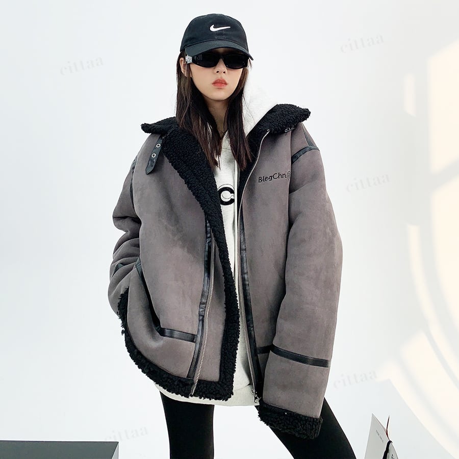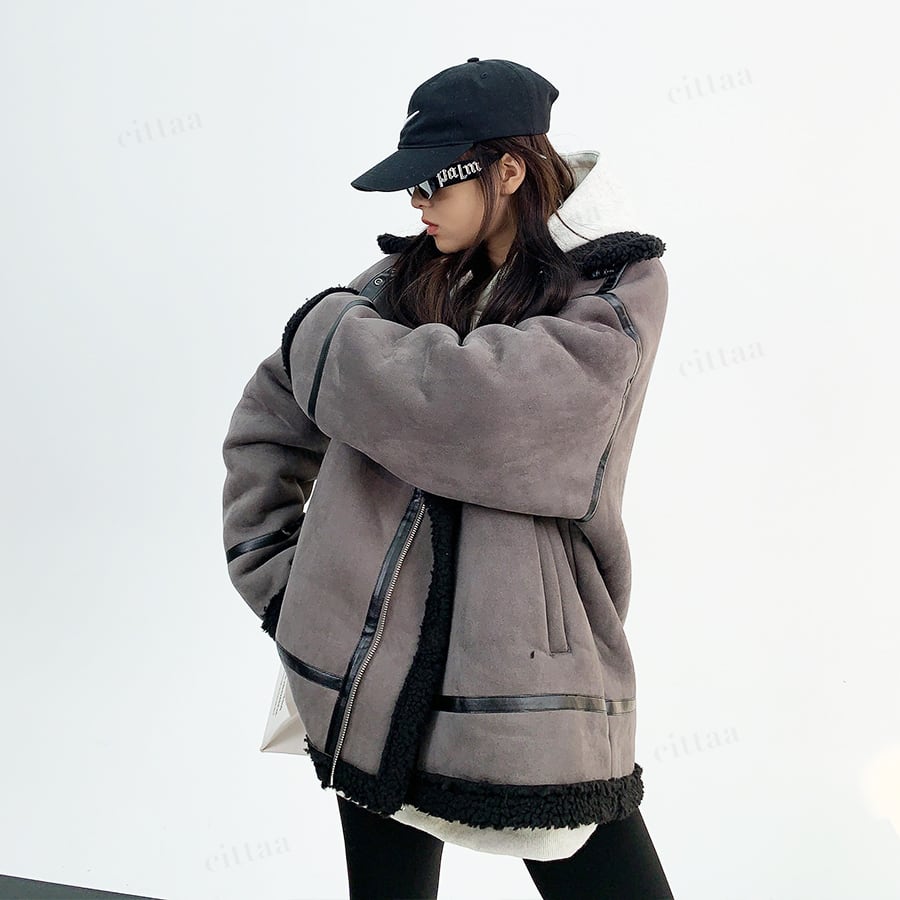 ✔︎ 羽織るだけでサマになる、ムートン風ボアデザイン