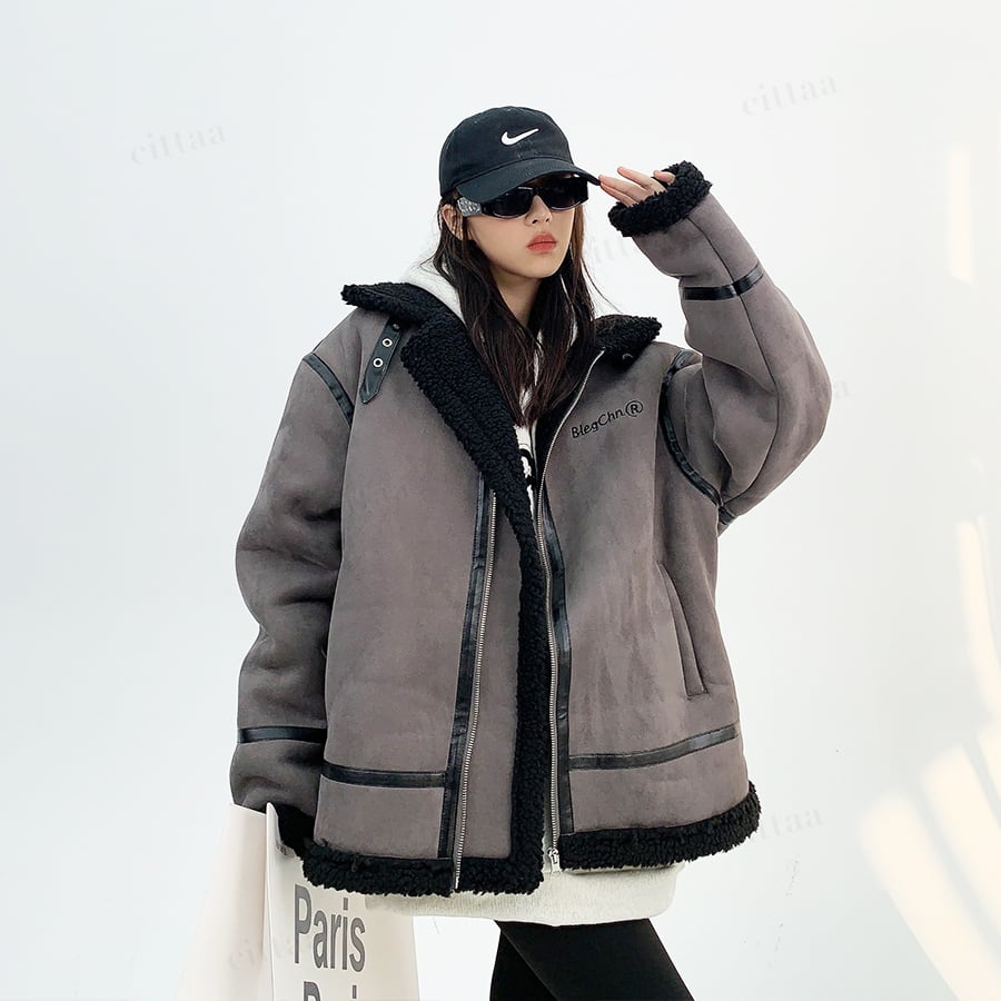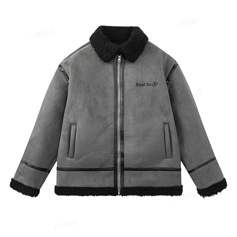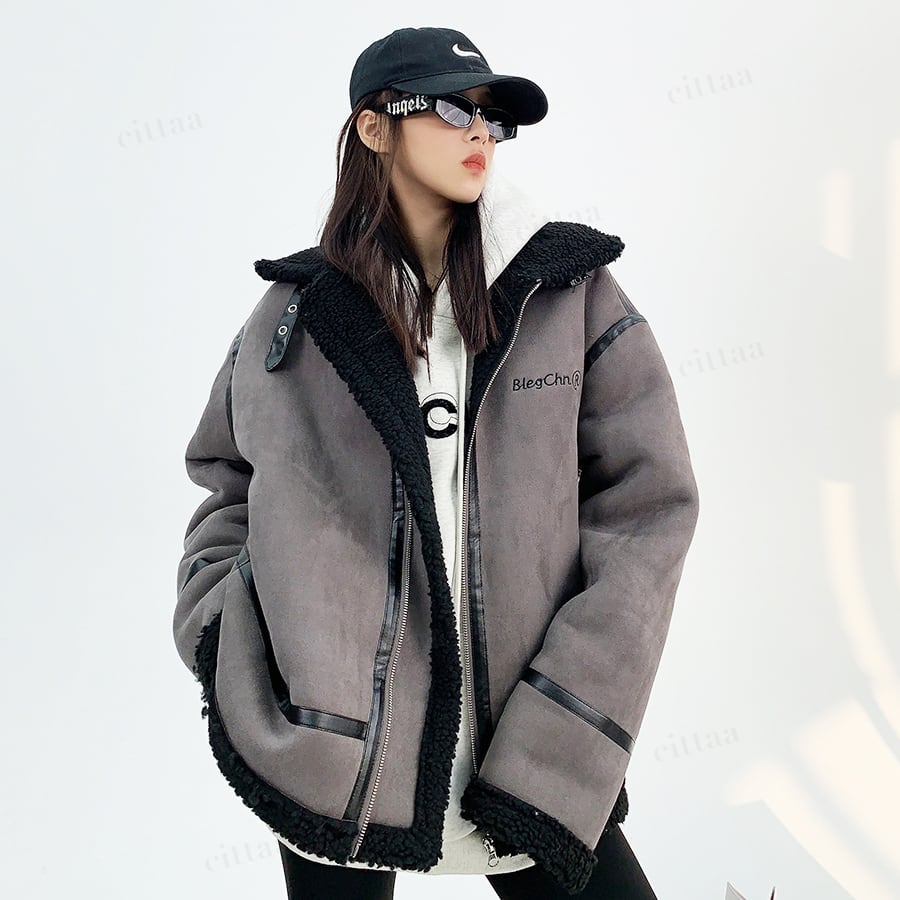 ★予約★D-655 2025秋新作♡BlegChnR刺繍ロゴムートン風ボアブルゾン グレー