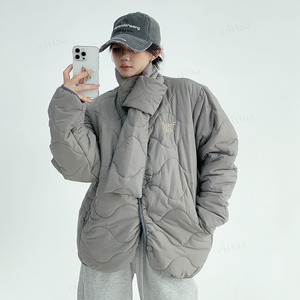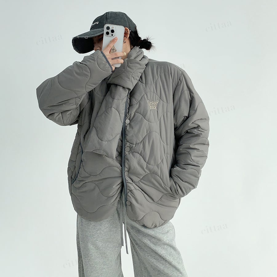 ★予約★D-656 2025秋新作♡【2点セット】STAFFPICKマフラー付きキルティング中綿ブルゾン グレー