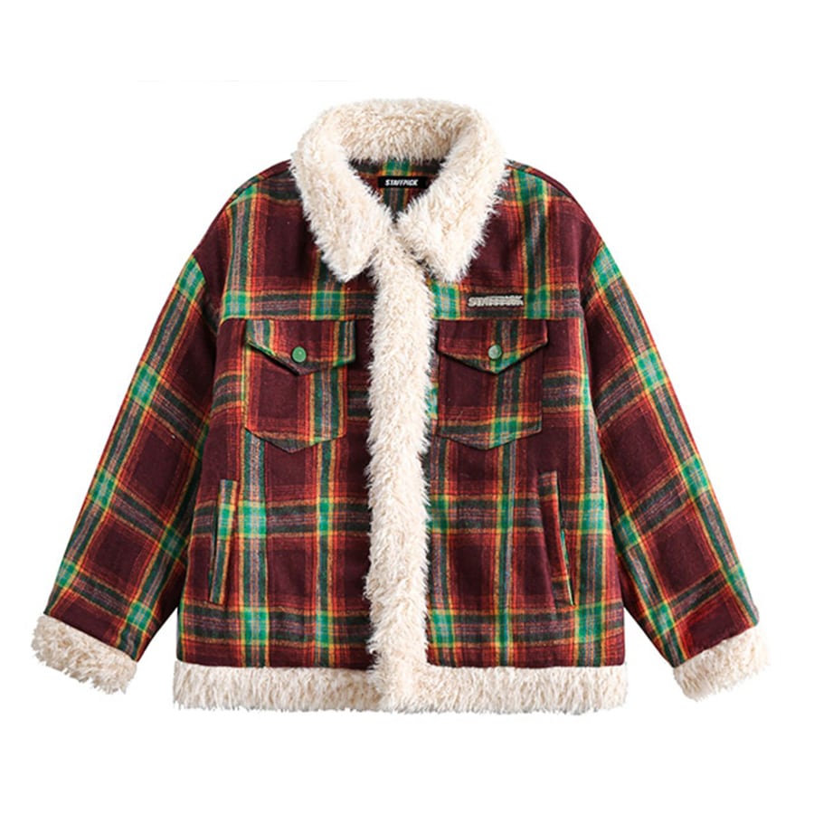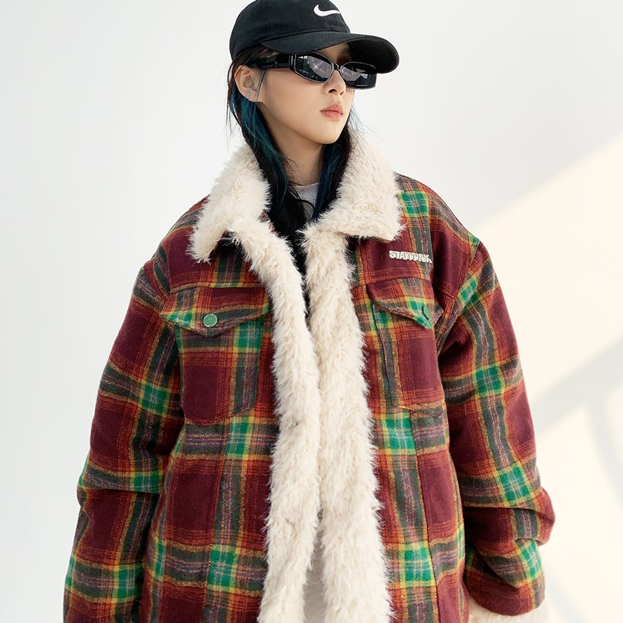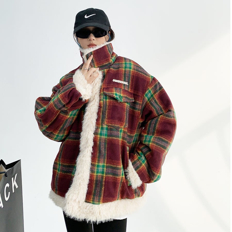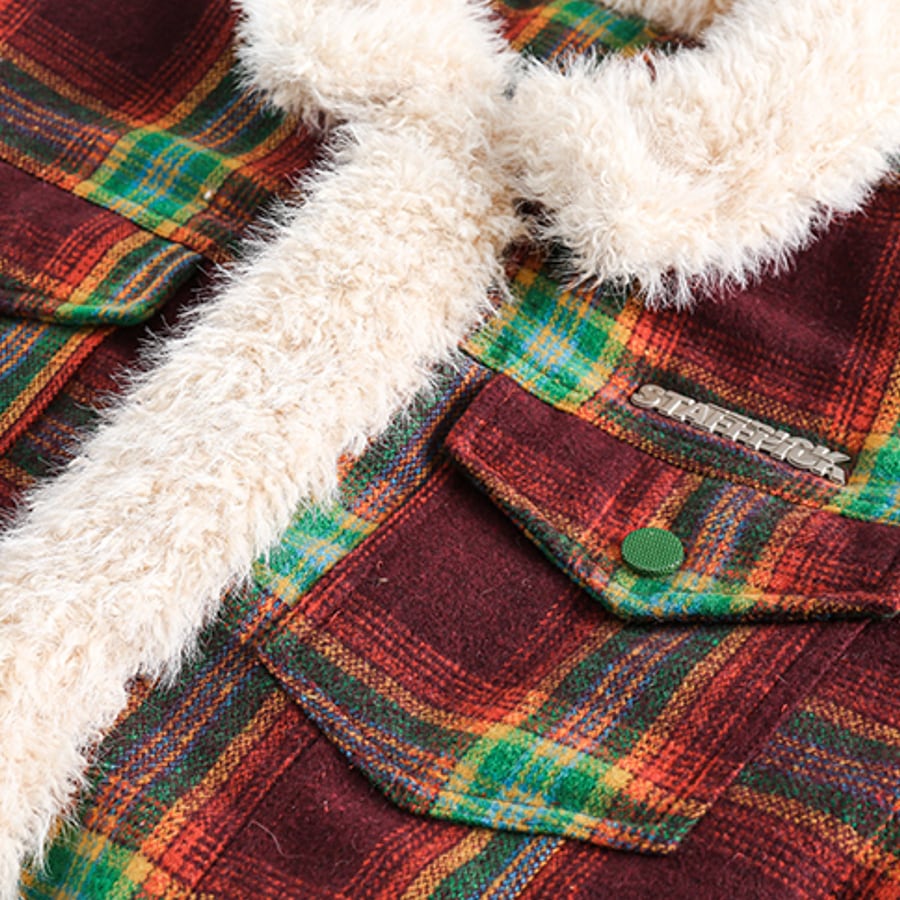 ★予約★D-657 2025秋新作♡STAFFPICKチェック柄ボアジャケット バーガンディー