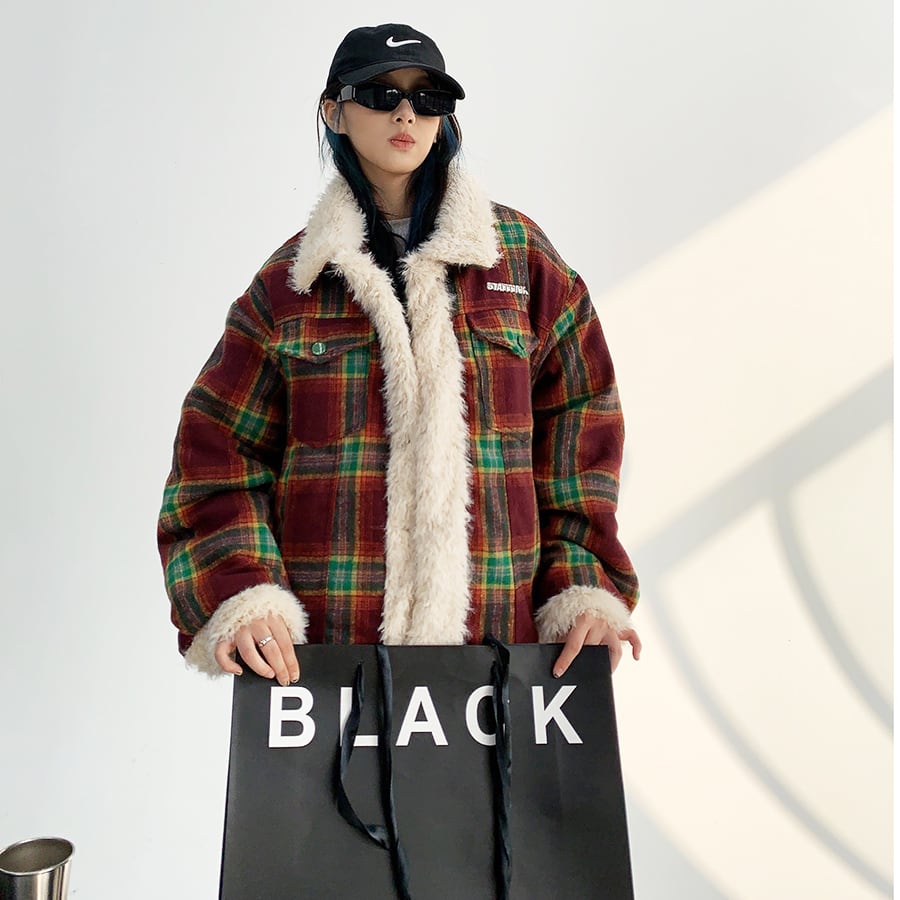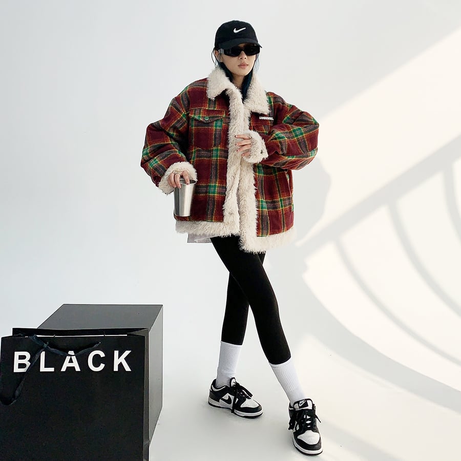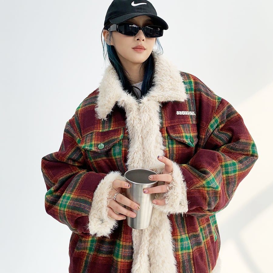 秋冬らしいチェック柄に、ふわっとしたボア素材が映えるデザイン。暗くなりがちな季節のコーディネートに、パッと明るさとトレンド感をプラスしてくれます。