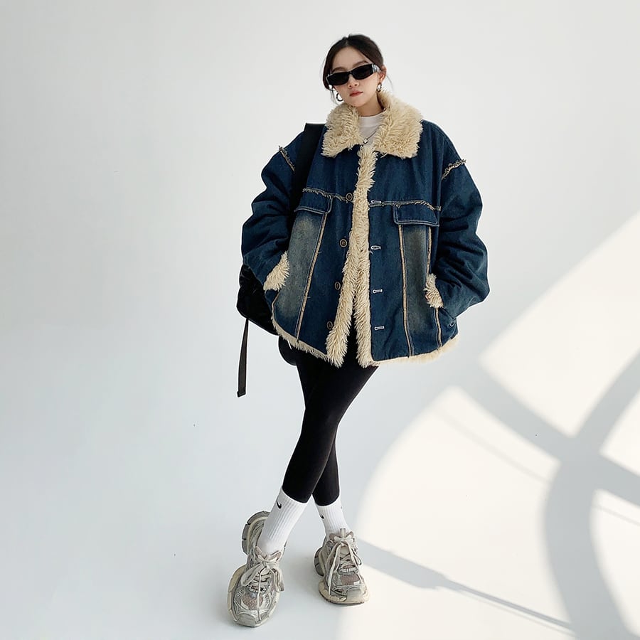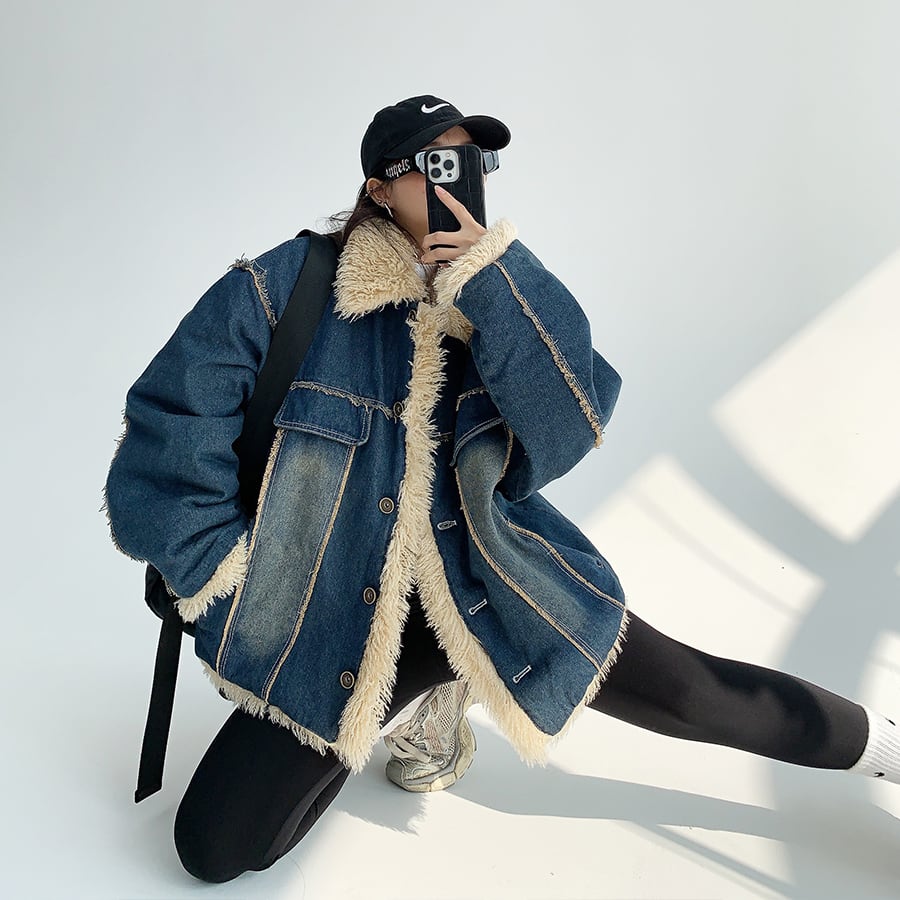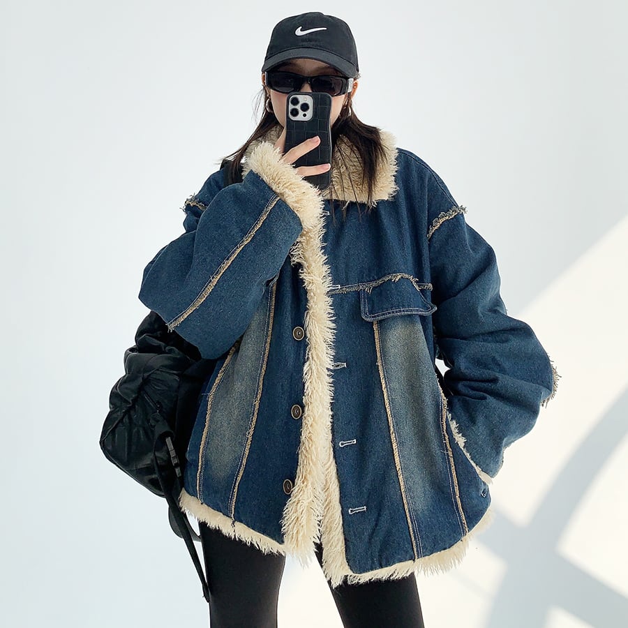 秋冬のカジュアルコーデにぴったりなファードッキングデニムジャケット♡