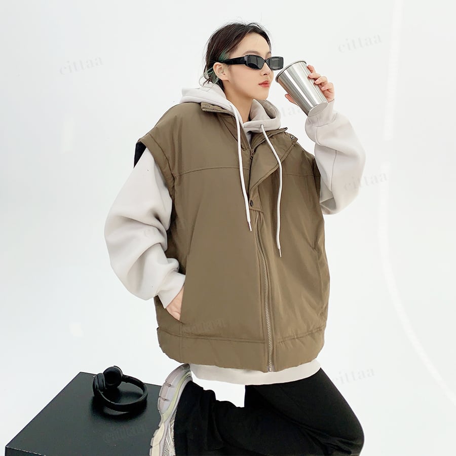 メンズライクな着こなしが今っぽいスタンドカラーベスト♡