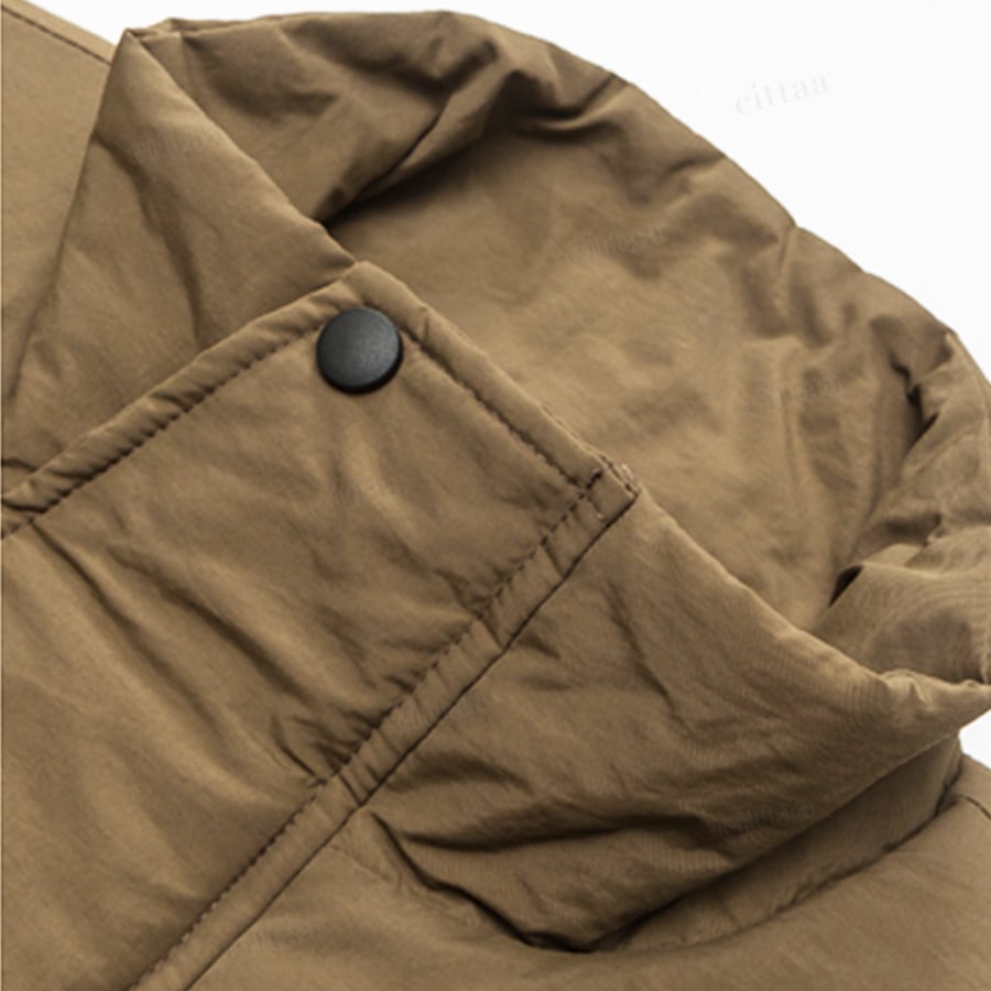 シンプルなスタイリングにプラスするだけで、こなれ感がぐっとアップ。ジップを上まで閉めればハイネックになり、首元までしっかり防寒できる実用性も魅力。