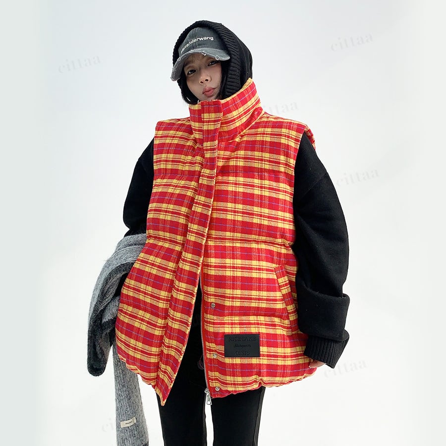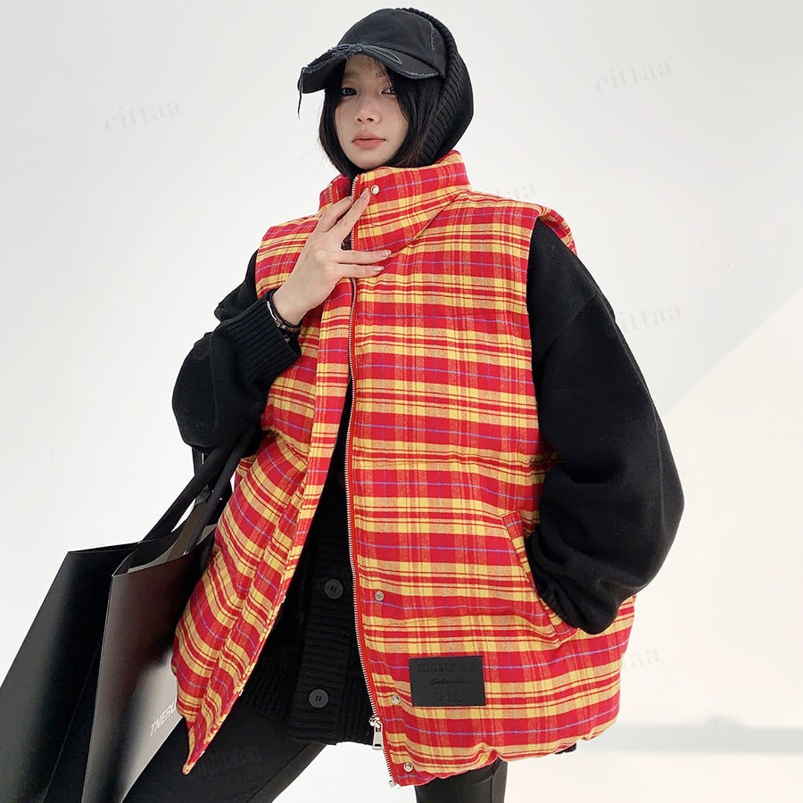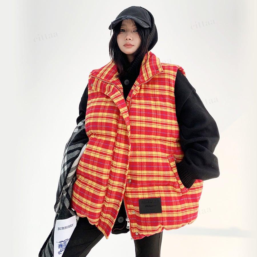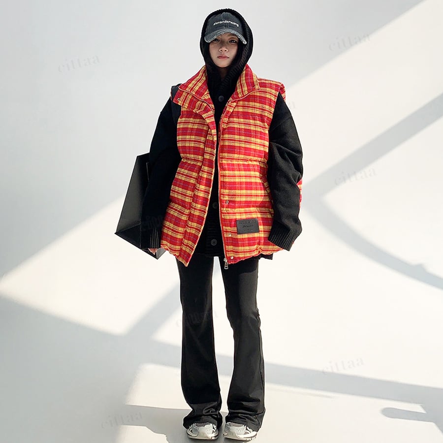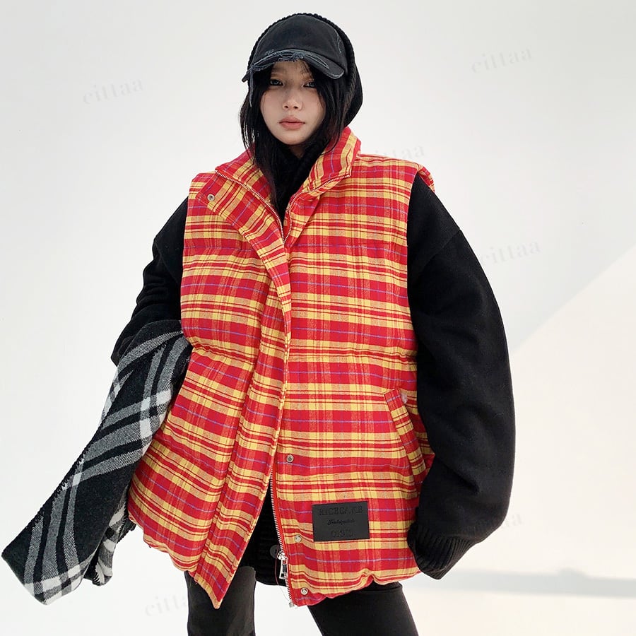 コーデが一気に映えるチェック柄中綿入りベスト♡