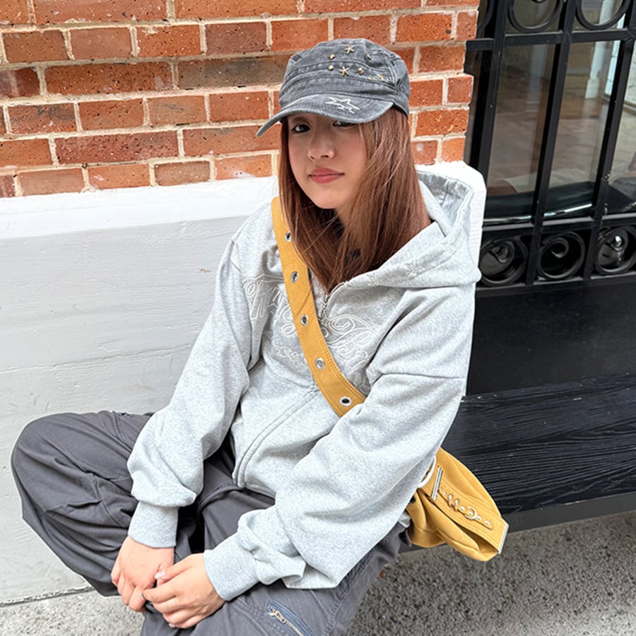 Y2Kな着こなしが今っぽい刺繍デザインジップアップフーディー♡