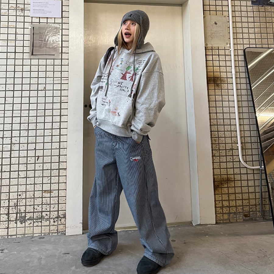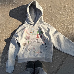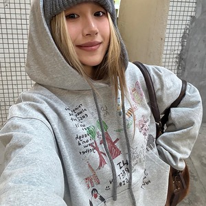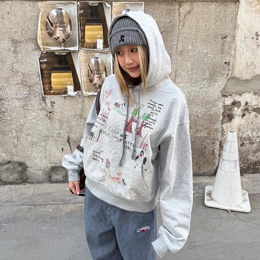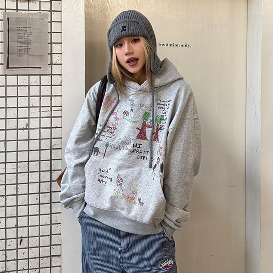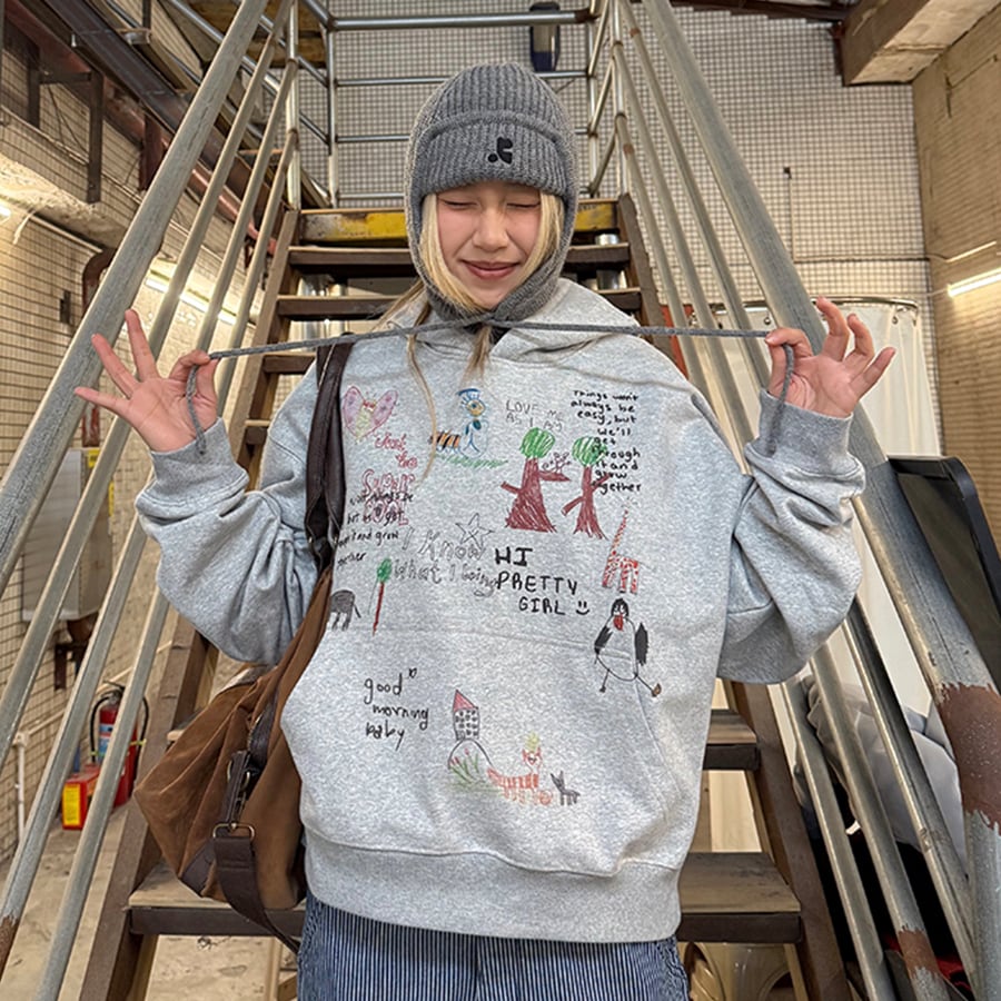 ★予約★D-645 2025秋新作♡落書き風プリントフーディー グレー