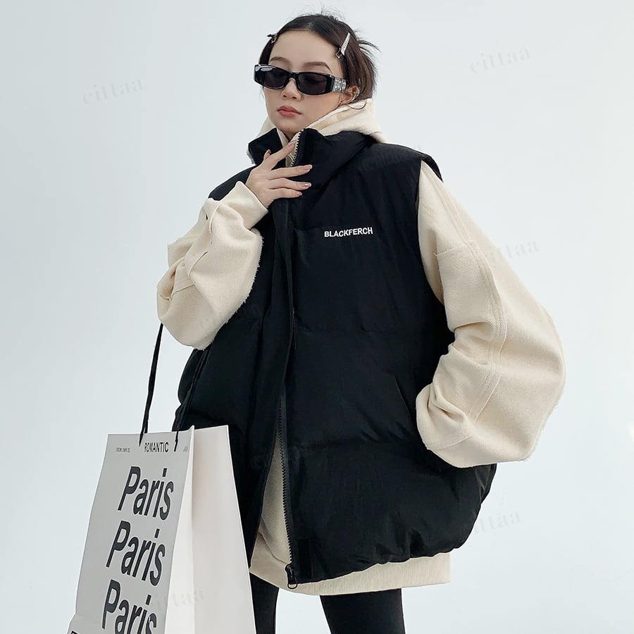 ★予約★D-670 2025秋新作♡BLACKFERCH刺繍ロゴ中綿ベスト ブラック