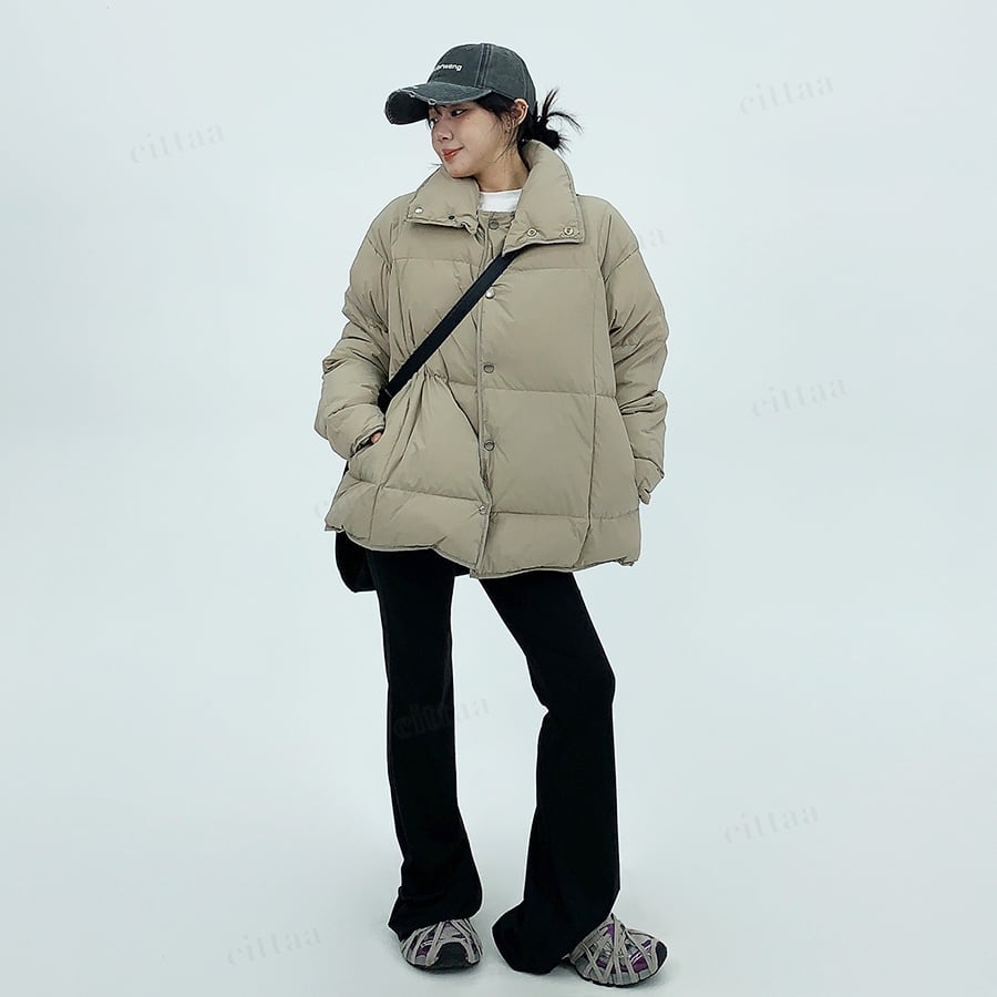 ★予約★D-672 2025秋新作♡2WAYハイネック中綿ダウンコート ライトブラウン