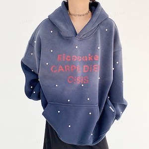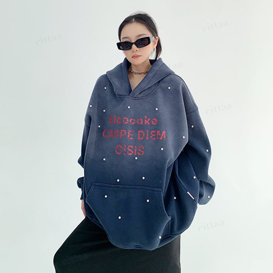 ★予約★D-674 2025秋新作♡Ricecakeパールスタッズグラデーションデザインフーディー ネイビー