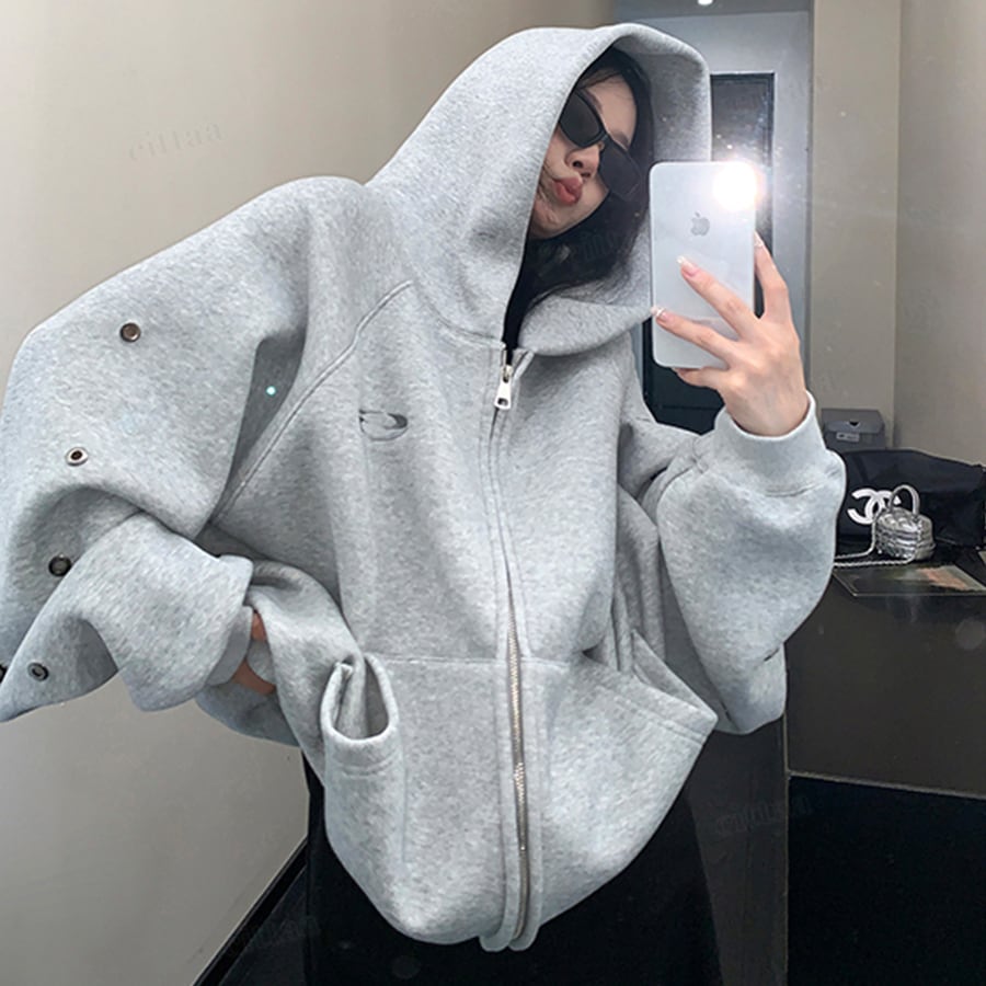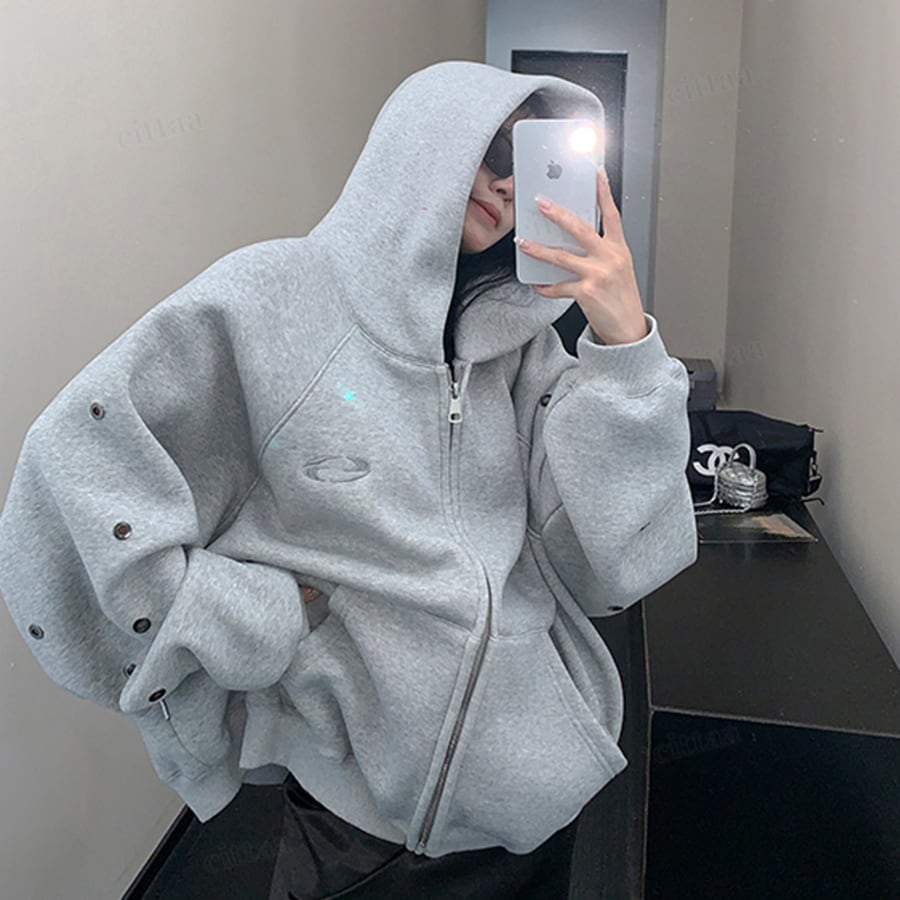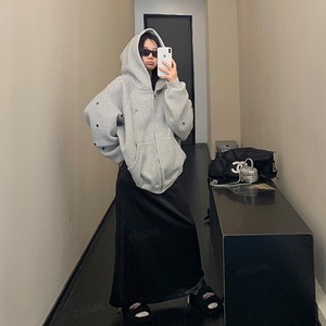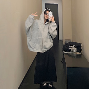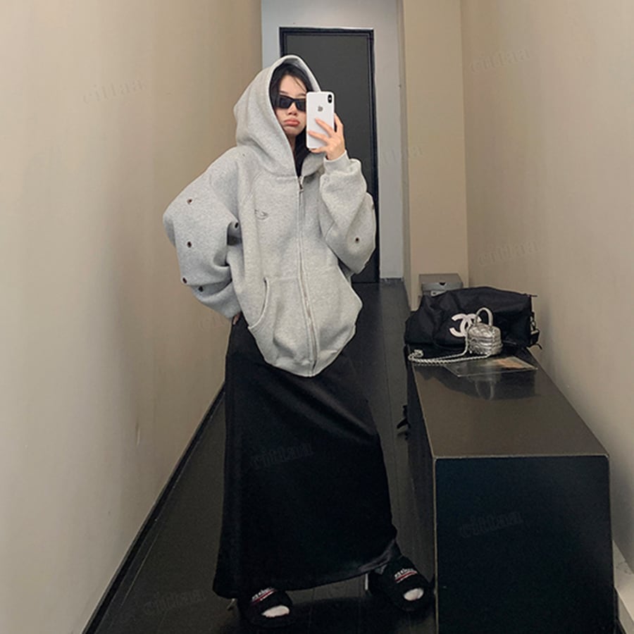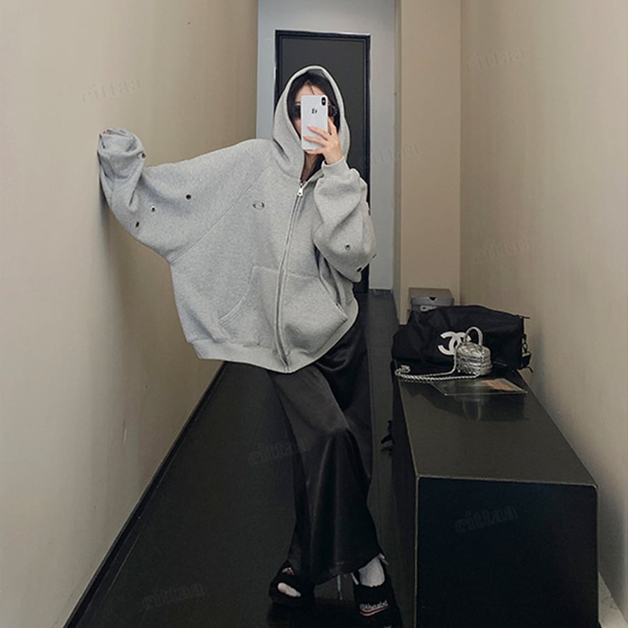 ★予約★D-681 2025秋新作♡パンチングデザインジップアップパーカー グレー