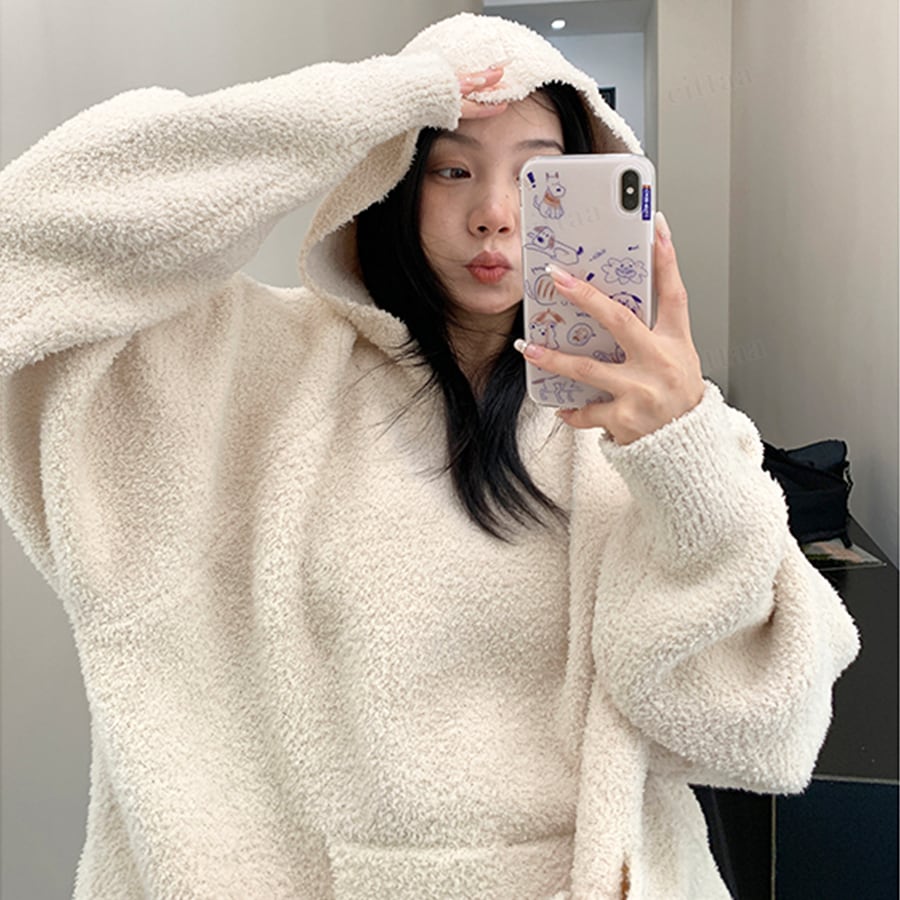もこもこの質感であたたかく、大人のカジュアルスタイルにぴったりです。