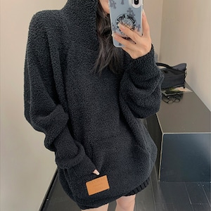 もこもこの質感であたたかく、大人のカジュアルスタイルにぴったりです。
