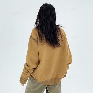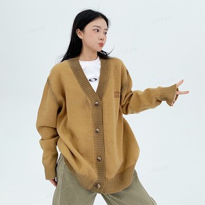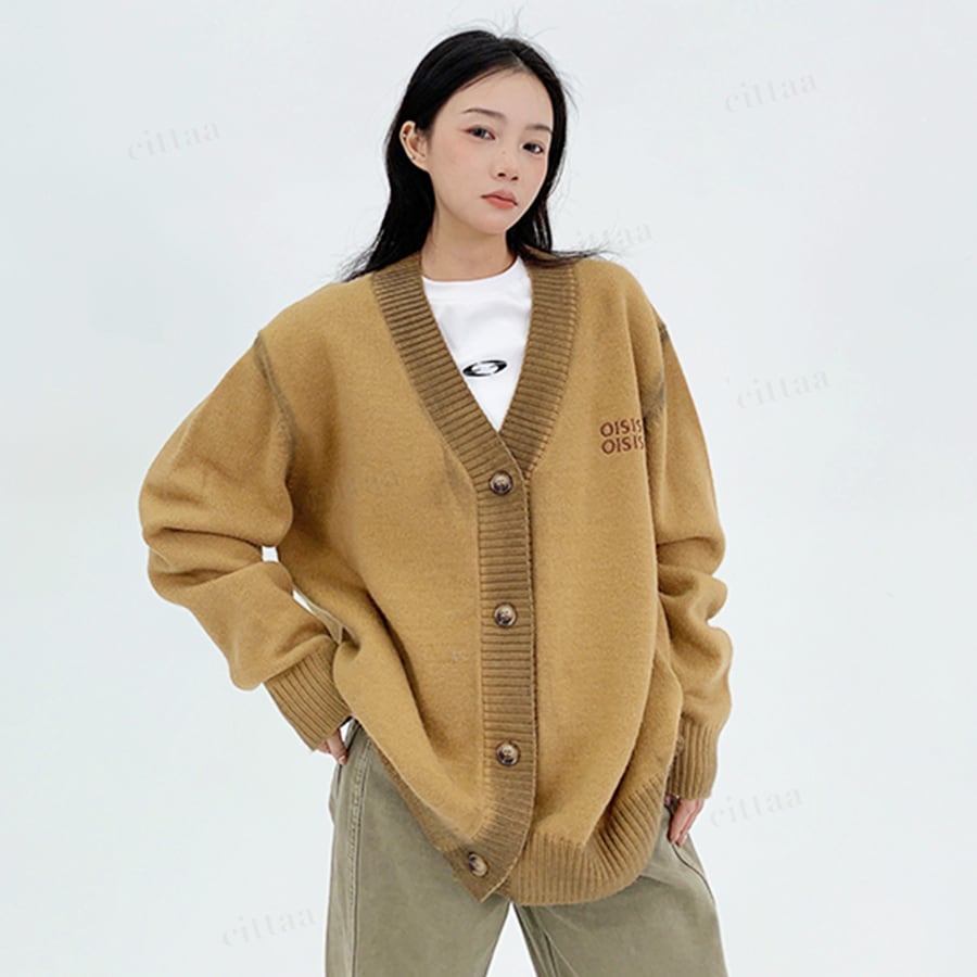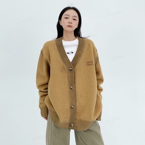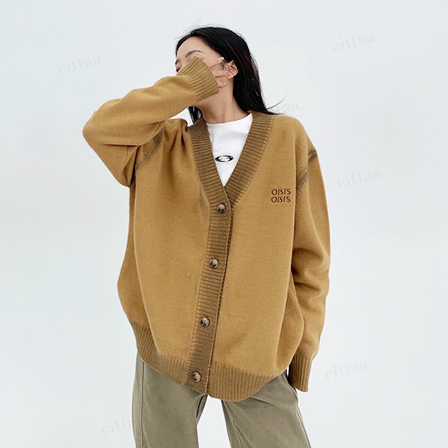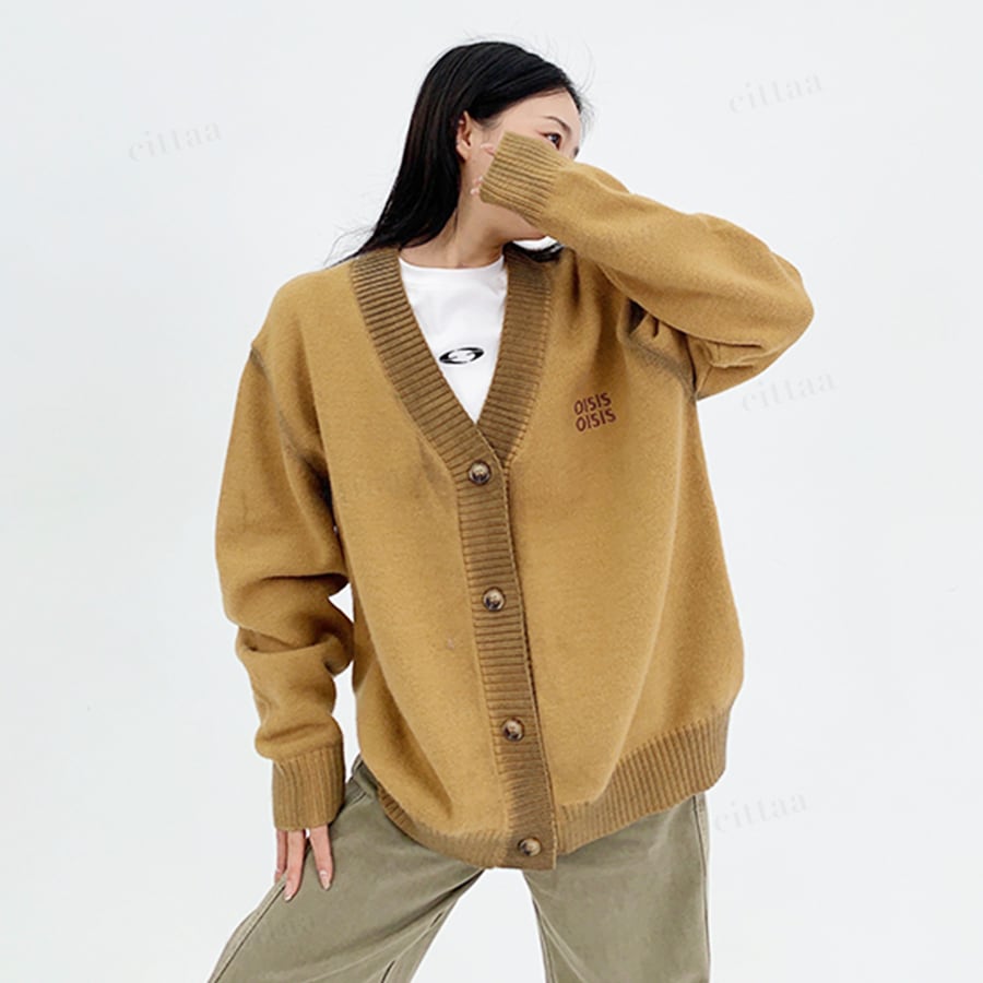 ★予約★D-689 2025秋新作♡OISIS刺繍ロゴVネックニットカーディガン ブラウンベージュ