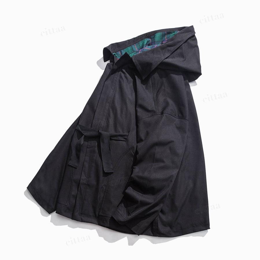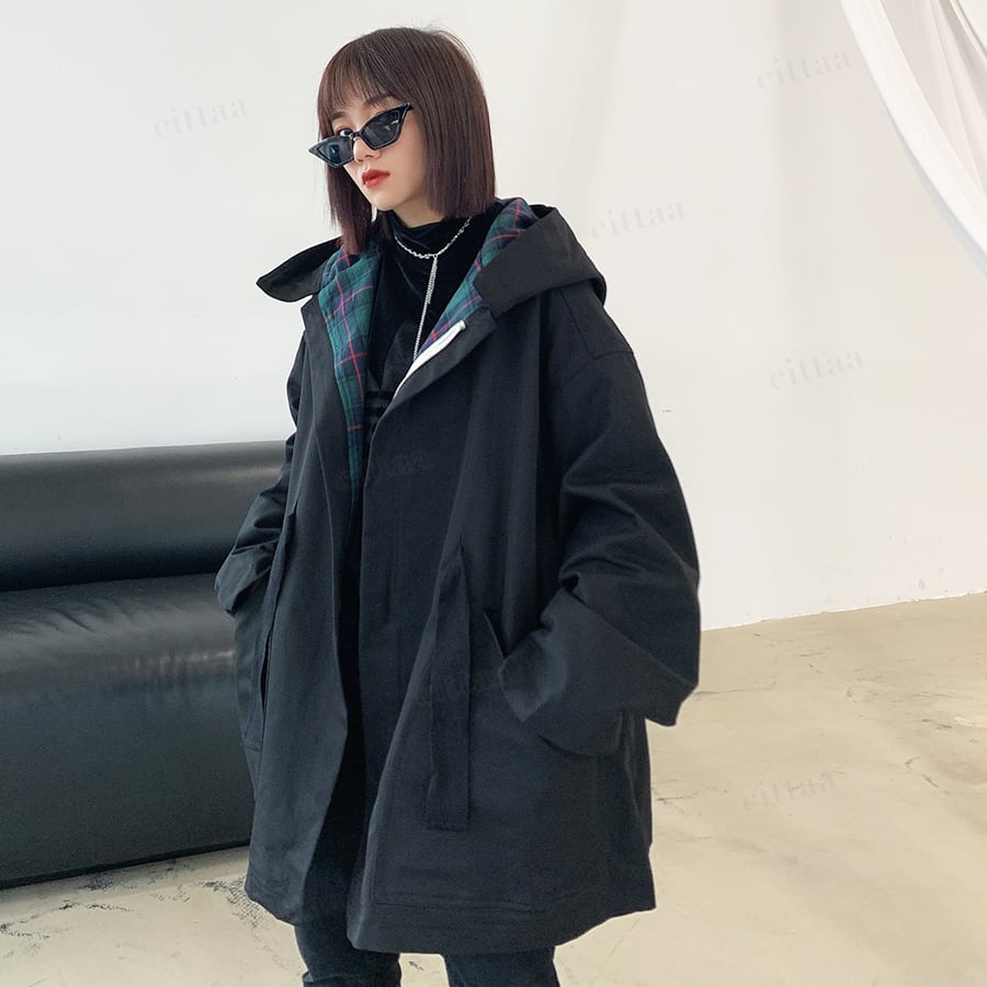 ★予約★D-559A ★厚手タイプ★2025秋新作♡裏地チェック柄ミドル丈モッズコート ブラック